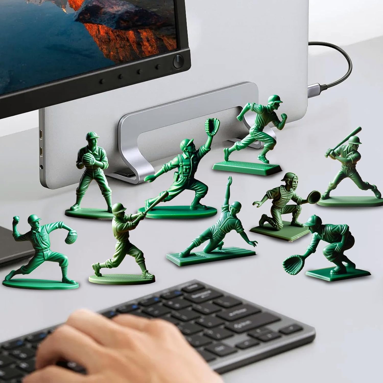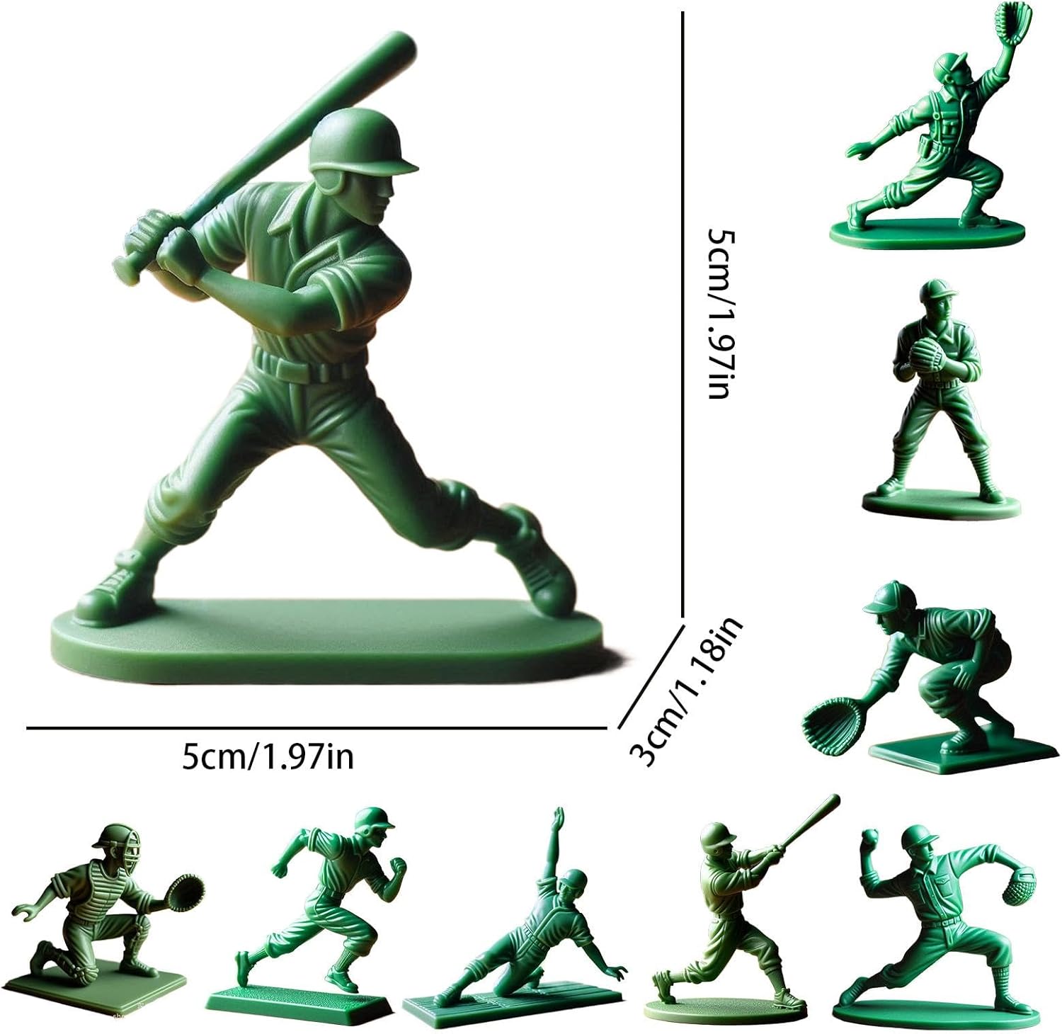 Diversifica --Tema: 9 figure classiche di giocatori di baseball, ognuna delle quali cattura il fascino di un lanciatore, ricevitore o difensore in pose distintive, migliora il tuo design autentico e dinamico Artigianato elegante: lavorazione liscia e raffinata La stampa 3D esalta questa figura verde di giocatore di baseball, adatta per collezioni a lungo termine di collezioni domestiche Design salvaspazio: dimensioni compatte, adatto per il posizionamento sulla scrivania Condividi la selezione: Questa figura di lanciatore di giocatore di baseball - Imposta l'attenzione ai dettagli è un'aggiunta adatta per gli amanti del baseball che vogliono mostrare la loro passione. Ideale per la famiglia, gli amici e i compagni di classe. Ampia applicazione: migliora la tua sala esami, la sala da pranzo o il letto
