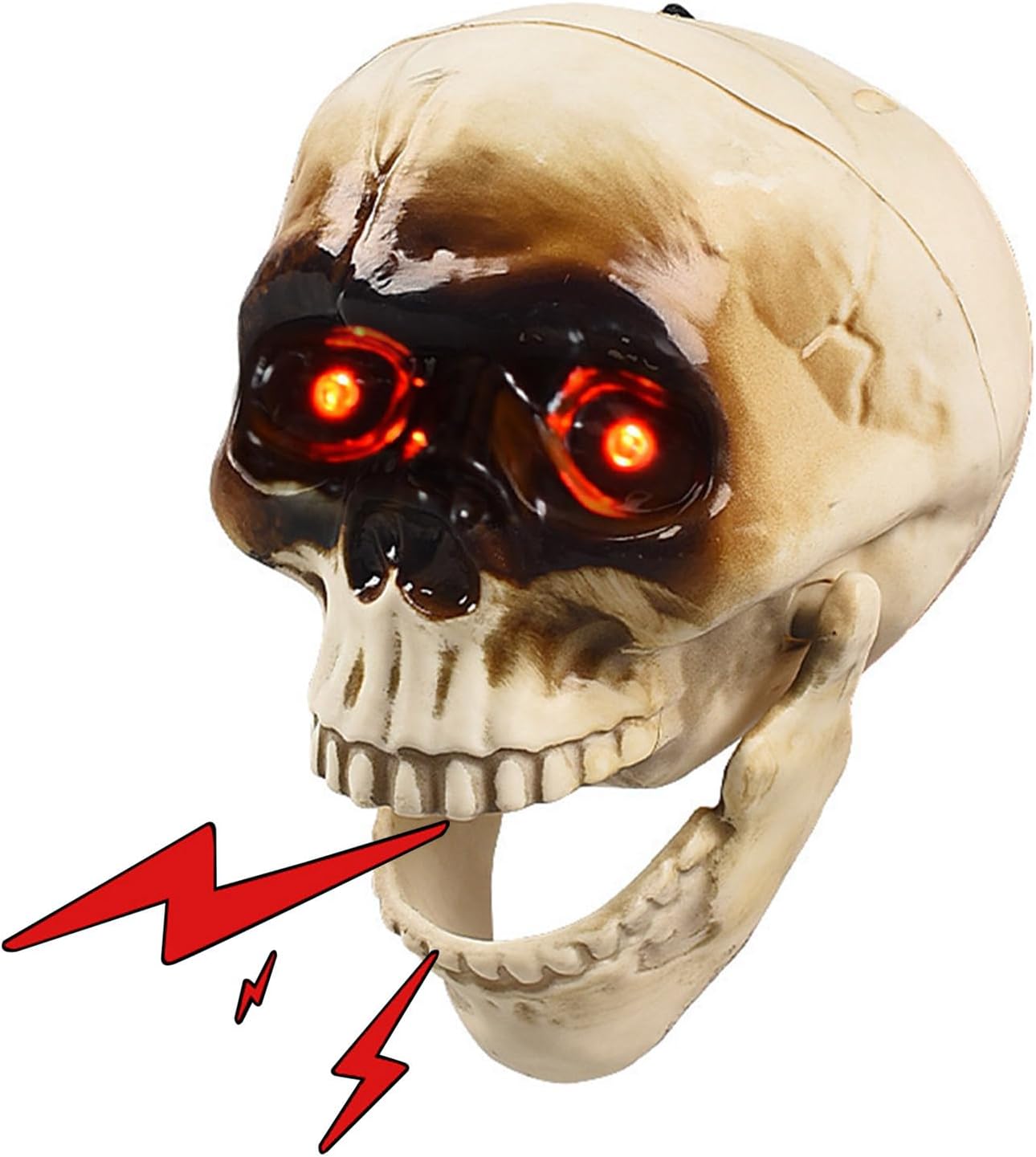 Materiale di lunga durata: queste teste di teschio di Halloween sono realizzate in materiale PP resistente al calore e di lunga durata garantisce stabilità e garantisce un'elevata resistenza per un uso a lungo termine. Atmosfera scintillante: migliora il tuo Halloween con forme realistiche di teschi imitazione con freddi occhi luminosi a LED, creano un'atmosfera rinfrescante per le gambe. Massimizza l'orrore: con le nostre teste con teschi di Halloween, i golosi spaventosi saranno troppo spaventosi quando i teschi motorizzati e attivati dal sensore aprono le mascelle ed emettono suoni della colonna vertebrale durante l'avvicinamento, aumentando l'interattività e il fattore spaventoso. Installazione semplice: entra facilmente nello spirito di Halloween. Appendi facilmente le leggere teste di teschio per creare un'atmosfera spaventosa all'istante. Semplice e comodo da installare, ottimo per tutte le tue esigenze di decorazione. Ampia applicazione: crea un'atmosfera spettrale e bella nel tuo cortile, stanza segreta o casa infestata con queste teste di teschio di Halloween. La loro compatibilità aggiunge un tocco di mistero per migliorare l'atmosfera spaventosa di Halloween.