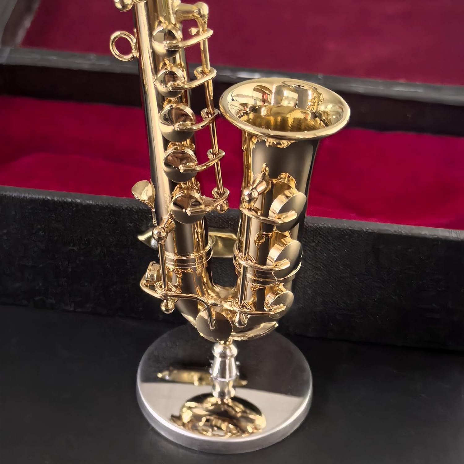Design multifunzionale: migliora i tuoi accessori per la casa con questo sassofono in miniatura in ottone con elementi placcati in oro. Linee curve, dettagli delicati e una calda brillantezza creano una precisa decorazione per sassofono per uso artistico in ogni stanza. Carisma vivace: combina eleganza e lavorazione dettagliata come oggetto d'arte convertibile. Come modello di sassofono decorativo, grazie alla sua luminosità senza tempo e alla struttura durevole, perfeziona l'atmosfera in ogni luogo: la struttura in ottone consente una lucentezza invariata con un'elevata stabilità del colore e mantiene in modo permanente l'aspetto decorativo del sassofono decorativo. Regalo significativo: combina il valore artistico con il fascino del collezionista come regalo significativo per celebrazioni, anniversari o occasioni speciali con espressione estetica. Facile da usare: diverse fasi di lucidatura garantiscono superfici fini e lisce prive di sbavature e offrono una sensazione tattile piacevolmente calda e delicata che migliora l'esperienza visiva e tattile dell'utente.