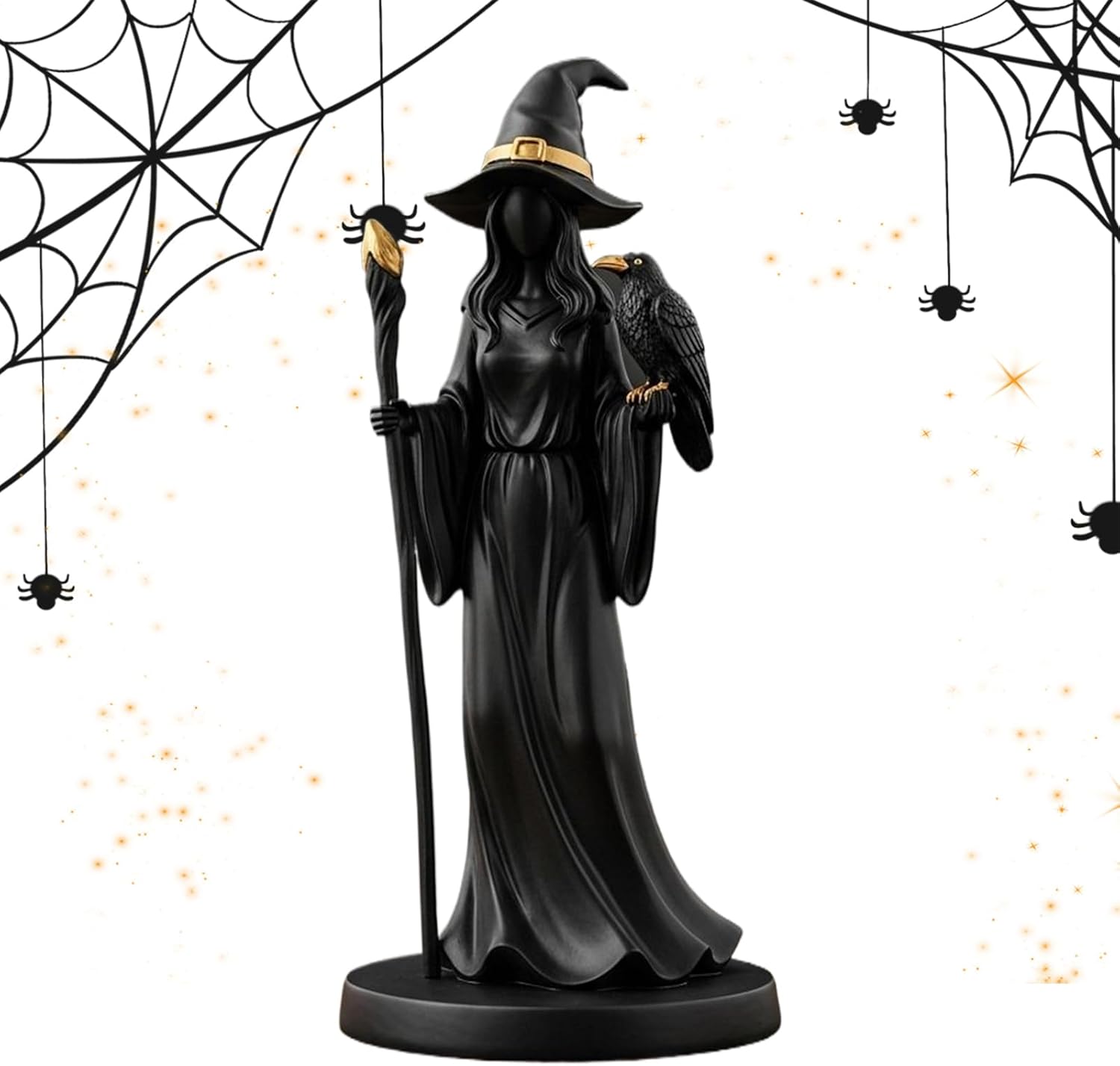 Dettagli dinamici: il flusso degli indumenti progettato ad arte e la precisa struttura del viso incarnano l'arte dei maghi e le storie delle streghe. Crea un'atmosfera suggestiva in stanze misticamente allestite. Maledizione: la statua mistica della strega con contrasto opaco lucido, misterioso simbolismo della maledizione ed estetica gotica crea un ambiente accattivante attraverso la lavorazione di alta qualità e l'esecuzione dettagliata. Colata di resina ad alta densità: per una durata ottimale, questa statua della strega combina la fusione di resina ad alta densità con dettagli da collezione per la stabilità. Strati strutturati e superfici lucidate a mano combinano fascino visivo con struttura robusta per un divertimento a lungo termine. Veste dinamica e simbolismo: la statua, decorata esclusivamente in oro, colpisce per la dinamica realistica della piega della veste. L'uso intelligente dei corvi intensifica l'impatto narrativo e crea un'esperienza da collezionista coinvolgente con un fascino estetico duraturo. Elementi in stile scuro: integrati nelle vetrine d'ingresso e si adattano all'estetica scura. La statuetta della strega arricchisce l'allestimento della scrivania e migliora efficacemente l'atmosfera degli eventi a tema magico.
