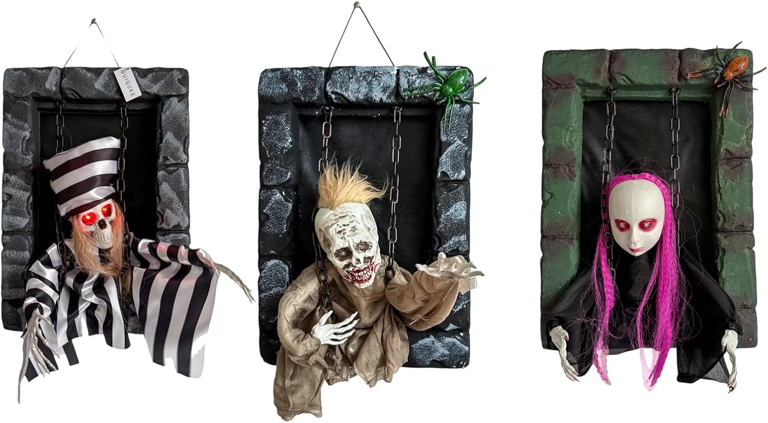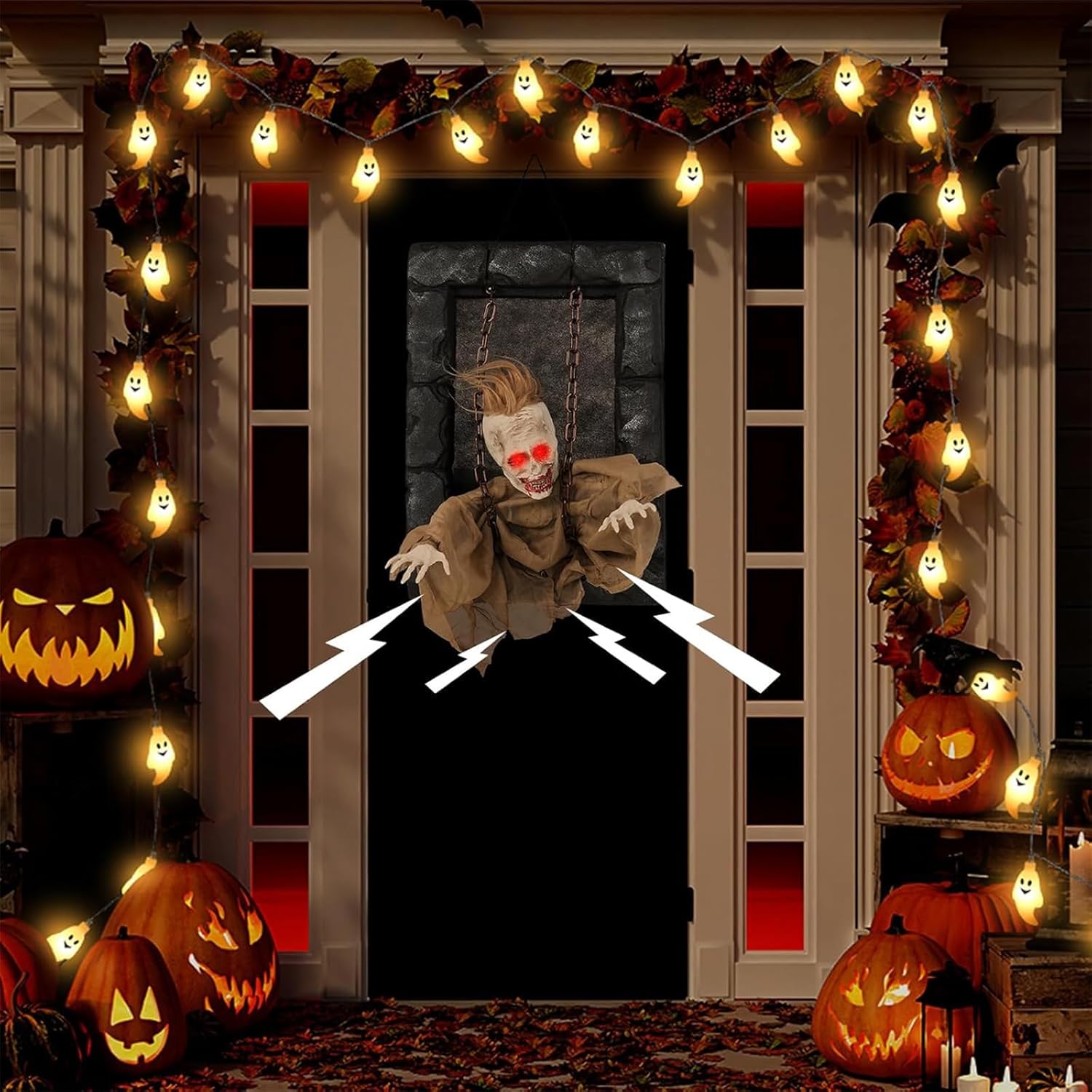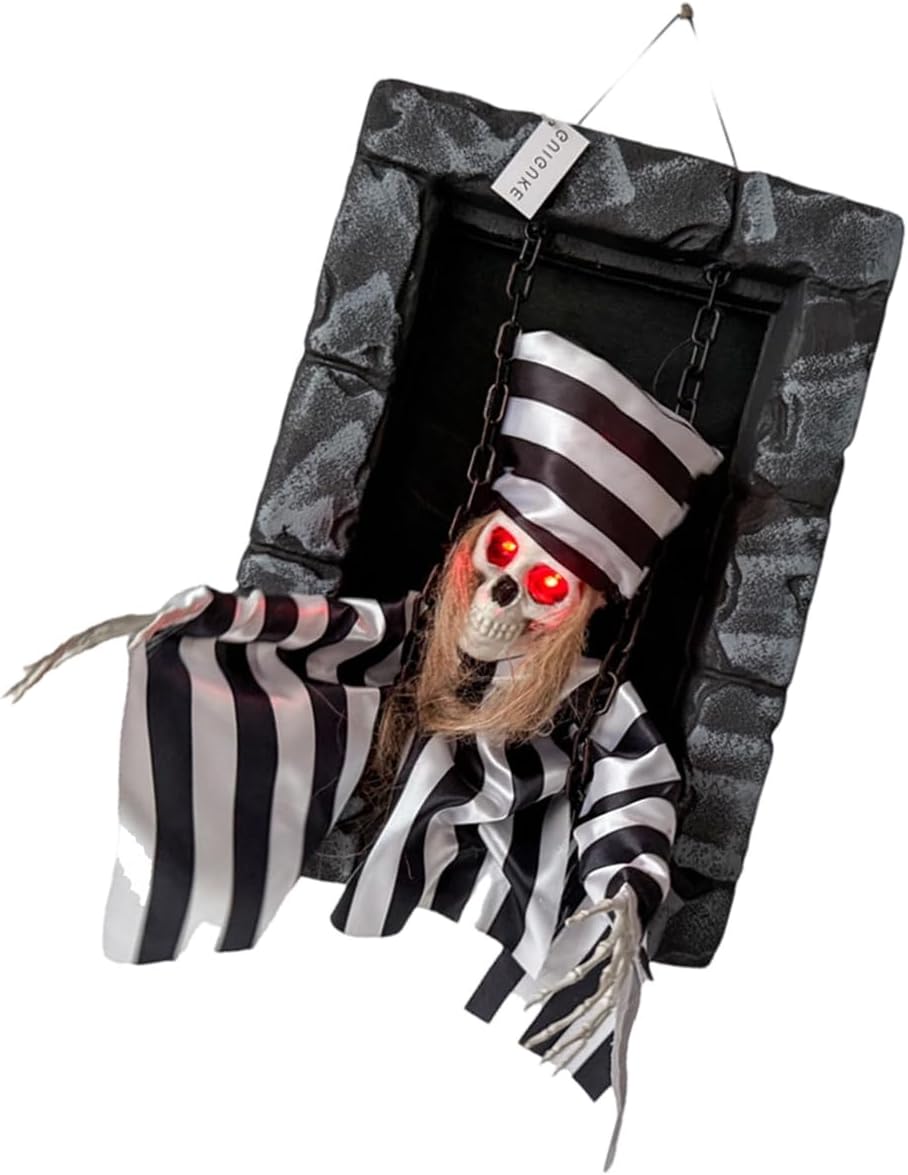 【Planumberebog con avvio sonoro】 Basta premere Modifica e questa decorazione dinamica si attiva con suoni forti, risponde a chat e urla, rendendola interattivamente spaventosa. garantisce una disposizione senza problemi Decheck flessibile di Halloween: progettato per l'uso domestico, è ottimo per essere appeso alle porte, oppure come residenze ombreggiate e feste di Halloween, aumentando istantaneamente il fattore paura ovunque sia posizionato Particelle di costruzione durevoli: realizzate in polietilene eccellente e materiali tessili selezionati, dureranno La decorazione del prigioniero resiste all'uso ciclico ed è quindi un'aggiunta permanente alla tua collezione di Halloween
