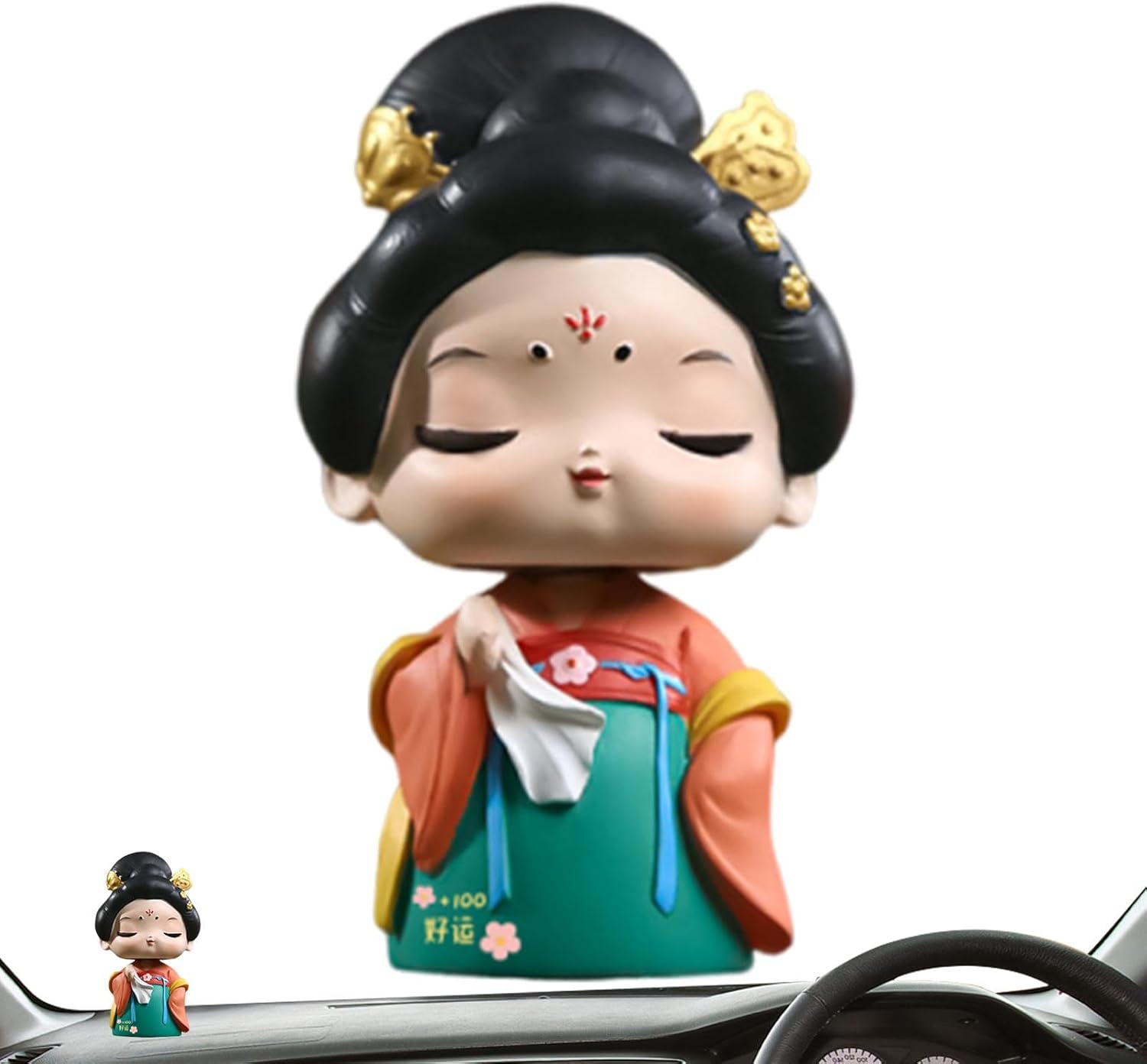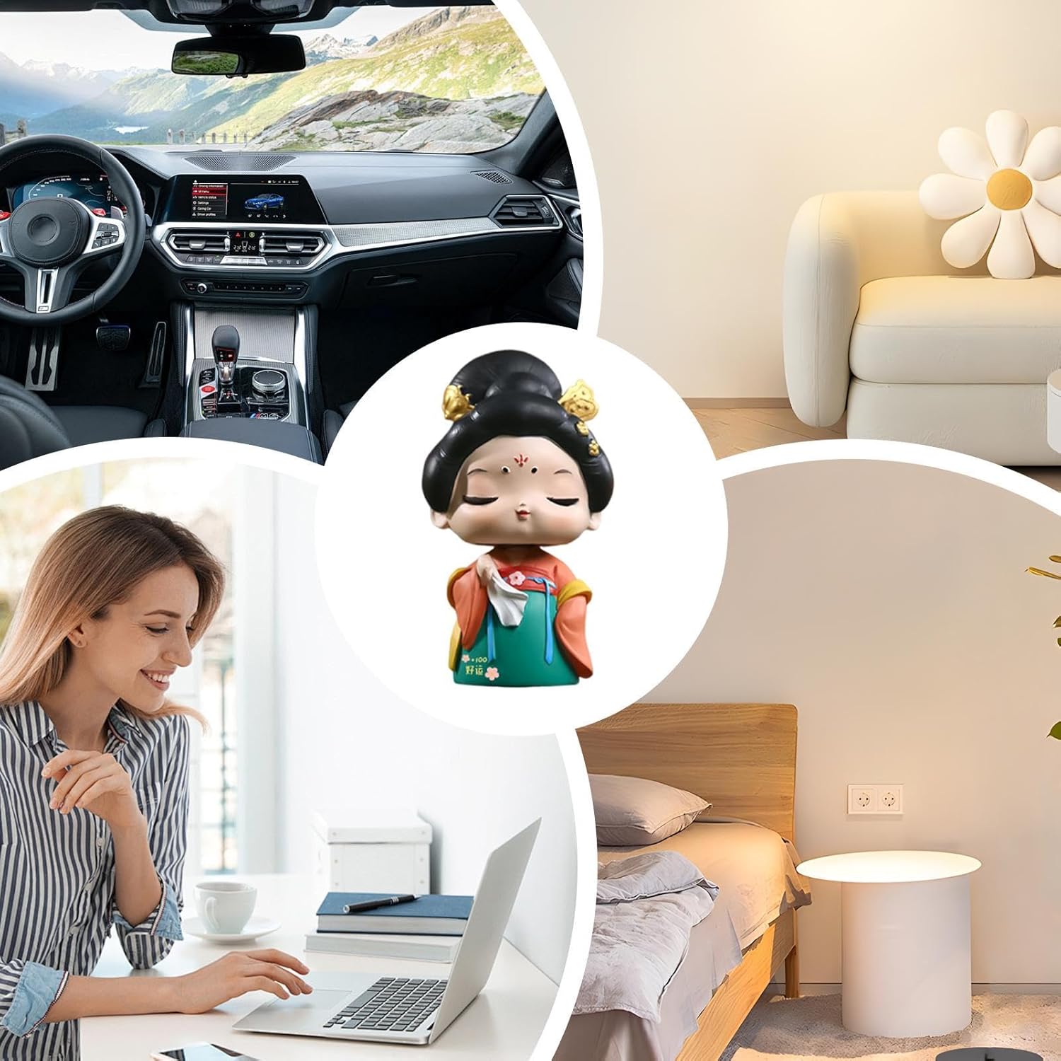 Crea un'atmosfera calda: queste figurine sono perfette per gli interni delle auto e trasmettono un senso di calma con la loro espressione gentile e il loro comportamento pacifico. Con un trucco viso intricato e sorprendente, ogni gioiello crea un ambiente rilassante e bellissimo. Funziona alla grande. Prodotti: Ogni bobblehead è scolpito a mano da abili artigiani utilizzando eccellenti materiali in resina, ottenendo un livello insuperabile di emissione di linee belle e morbide. Queste figurine rappresentano un artigianato perfetto che impressionerà anche i collezionisti più esigenti. Giocattolo caratteristico: il design a molla integrato fa sì che l'ornamento oscilli naturalmente con i movimenti del tuo veicolo, aggiungendo un fattore divertente e giocoso ai tuoi viaggi. Porta entusiasmo e gioia nel tuo viaggio e aumenta il divertimento e l'interattività dell'ornamento. Modelli multipli: le nostre statuette hanno quattro stili tra cui scegliere, inclusi modelli con specchio, ventaglio, maniche singole o graziose, per soddisfare le diverse esigenze dei diversi utenti. Ampia applicazione: sono sia pratici che belli, di dimensioni moderate, non occupano troppo spazio e sono perfetti da posizionare in auto, a casa o in studio. Queste figure sono spesso utilizzate come decorazioni eleganti e rappresentano una soluzione salvaspazio per piccole aree