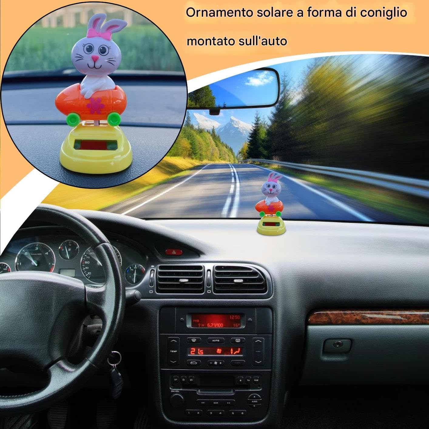 Movimento Ondulatorio Dolce: Questo accessorio solare per finestra genera movimenti rilassanti avanti e indietro alimentati dalla luce solare, promuovendo il relax e riducendo lo stress mentre aggiunge un elemento dinamico ma calmante a qualsiasi stanza sia necessaria un'atmosfera pacifica, ideale per creare un ambiente tranquillo e accogliente attraverso il suo funzionamento efficiente e silenzioso. Vivacità Affidabile sotto Stress: Progettate per resistere alle condizioni di guida accidentate, queste figure danzanti mantengono colori vivaci usando materiali durevoli e resistenti sbiadimento; il design a base robusta previene l'imbarcamento, assicurando che rimangano un'aggiunta dinamica e attraente per qualsiasi ambiente esterno come giardini posteriori o portici anteriori tutto l'anno. Movimento ad Energia Solare: Le figurine danzanti convertono la luce in movimento dinamico utilizzando componenti fotosensibili ad alta efficienza, eliminando completamente la necessità di sostituire le batterie e assicurando prestazioni fluide e continue sul cruscotto 'auto o in vari scenari interni per un godimento ininterrotto e una comodità pratica nella vita quotidiana, con un funzionamento affidabile che sfrutta la luce ambiente per offrire intrattenimento costante senza interru Design Adorabile del Coniglio: Con un design adorabile di coniglio, questi giocattoli danzanti offrono movimenti di bvivaci che un'atmosfera , perfetti per il posizionamento sul cruscotto 'auto, sulla scrivania o sul davanzale. Portano vitalità e divertimento sostenibile nelle case e nei veicoli senza sforzo, utilizzando la luce solare per animare gli spazi con un tocco di gioia e dinamismo. Gamma Ampia di Applicazioni: Le figure da cruscotto esperienze vibranti e divertenti con il loro design di ornamenti vivaci, offrendo una quotidiana che trasmette i migliori auguri. Sono perfette per regalare durante le festività e per migliorare i momenti gioiosi in interni o esterni, portando allegria in auto, in casa o in giardino grazie alla loro presenza costante e piacevole che si adatta a diverse situazioni quotidiane con facilità e stile.