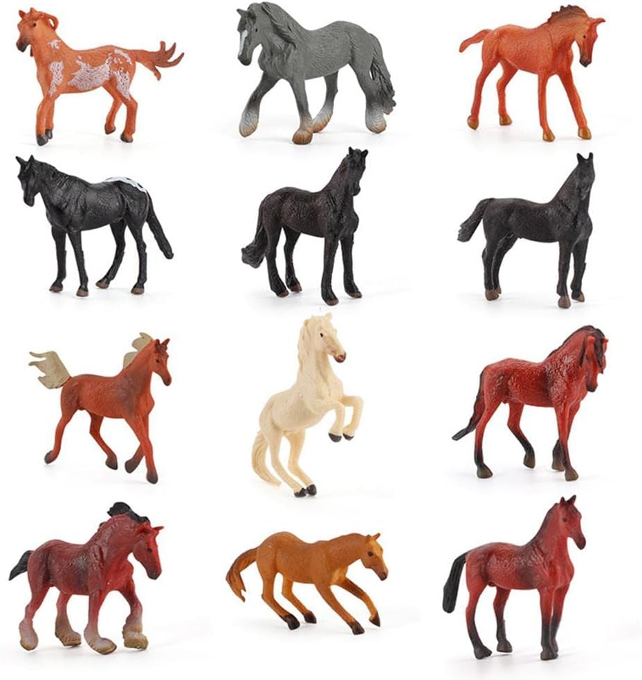 12 diverse bambole di cavalli: riceverai 12 diverse forme di modelli di cavalli con altezza da 1,38 pollici a 1,89 pollici, stili diversi e dimensioni adatte con cui giocare. Puoi condividerlo con i tuoi amici e familiari. Sicurezza dei materiali: il costume da bambola del cavallo è realizzato in materiale plastico PVC, che non è facile da danneggiare o sbiadire, affidabile nell'uso, riutilizzabile, impermeabile e non si modella né si corrode a causa delle intemperie. Giocattoli educativi: e le ragazze potranno godersi ore di gioco fantasioso con cavalli realistici; I genitori possono raccontare loro storie sui cavalli o una vita familiare felice con i cavalli, giocare e divertirsi con loro. Allo stesso tempo, trascorrere del tempo con la famiglia rafforza il rapporto genitore-figlio e promuove la creatività. Bellissima decorazione: questi cavalli di plastica hanno posture diverse e colori naturali. Sono una meravigliosa decorazione per la tua torta e casa, biblioteca, ufficio o stanza, portano più divertimento nella tua vita e creano un'atmosfera piacevole. Ottimo regalo di compleanno: vale la pena collezionare le figurine degli animali e decorare la libreria, la scrivania e la stanza dei bambini. È un fantastico regalo di compleanno o un premio per i bambini. Sarebbe anche una buona idea usarli come cake toppers e preparare una torta a tema animale per i tuoi bambini. Lo adorerebbero così tanto.