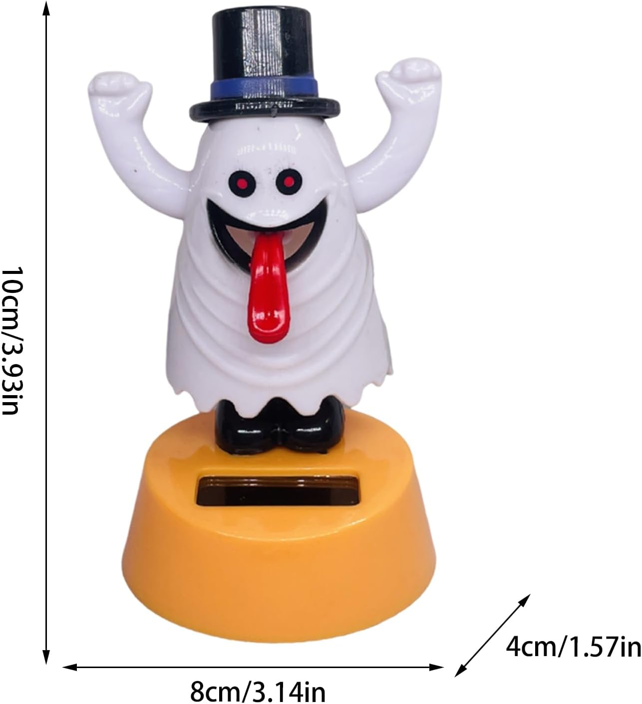 Fascino di Halloween in viaggio: aggiunge il gioioso Halloween ai viaggi di vacanza, crea un'atmosfera vacanziera accattivante con affascinanti figurine di fantasmi in movimento realistico. Robusta lavorazione del materiale: durevole figura di danza solare realizzata in materiale durevole, mantiene la sua forma in modo permanente. Eccezionale attenzione ai dettagli e lavorazione accurata per un look accattivante. Funzionamento controllato dal sole: il modulo solare integrato consente di ballare in modo autosufficiente senza una fonte di energia esterna, offre un uso efficiente dal punto di vista energetico e a bassa manutenzione a lungo termine quando il sole splende. Formato adatto ai viaggi: con dimensioni compatte e design lusinghiero, la figura solare danzante è estremamente leggera. Sta in ogni tasca e funziona ovunque: ideale quando la mobilità conta. Posizioni: Versatile nell'uso grazie alla base piatta per scrivanie o davanzali e base antiscivolo per il montaggio sul cruscotto in qualsiasi ambiente.