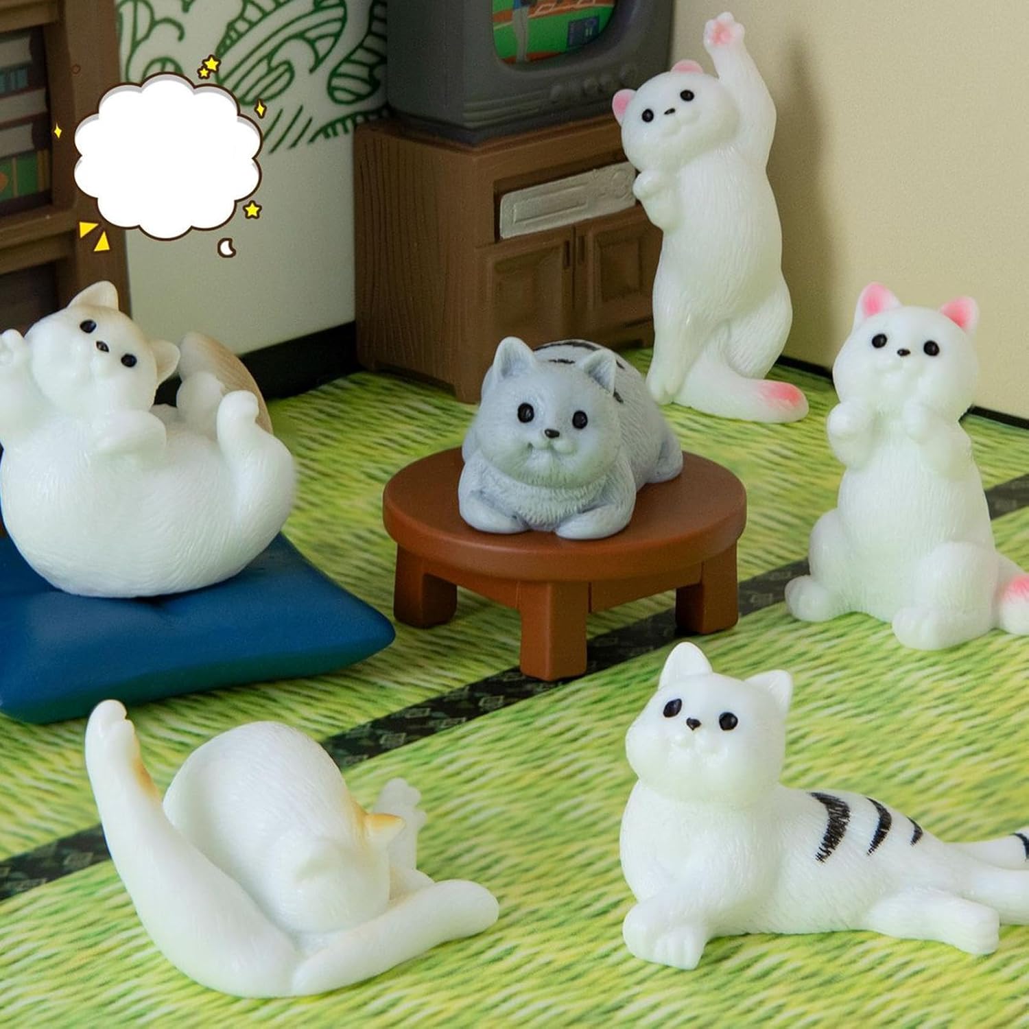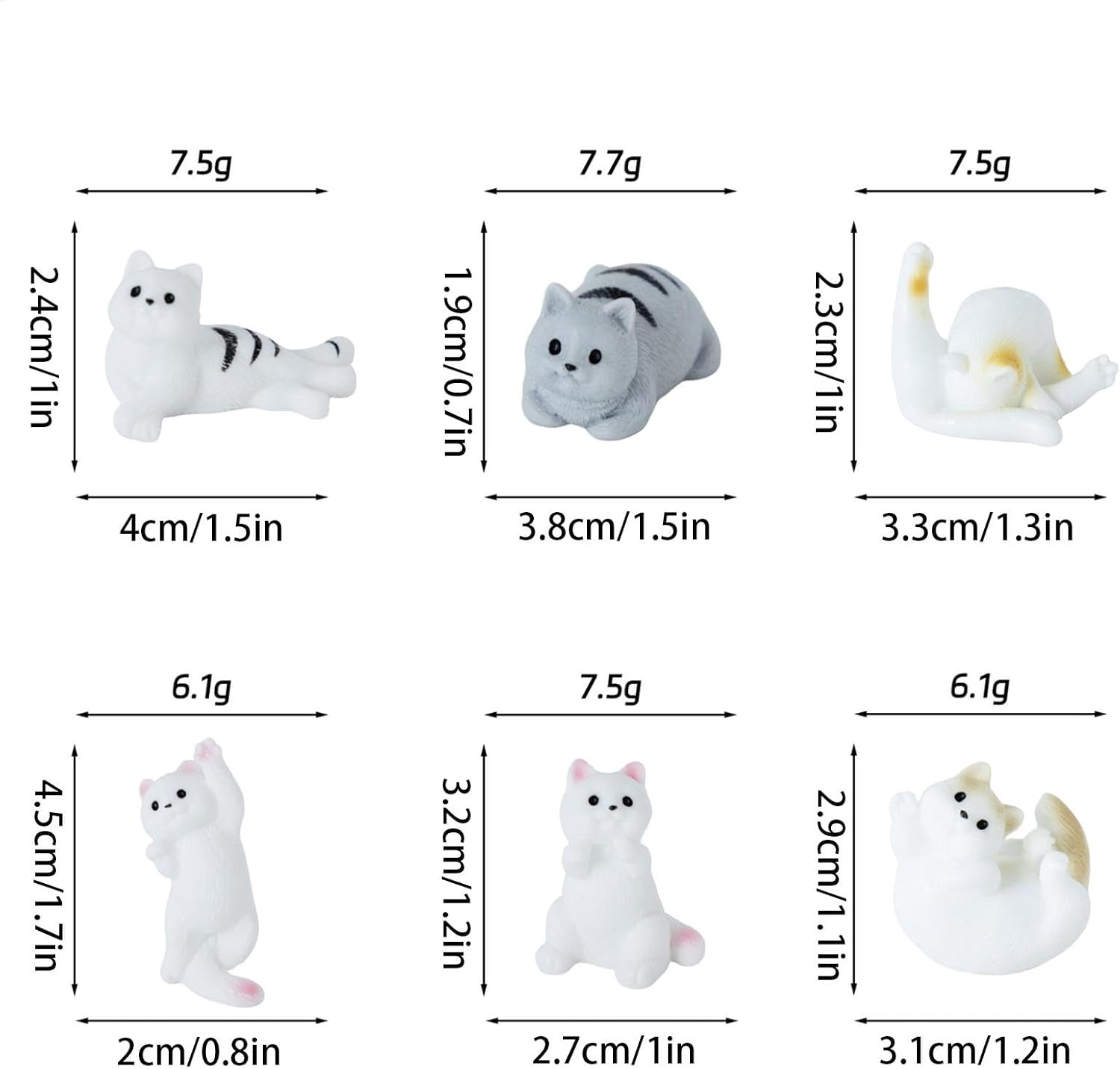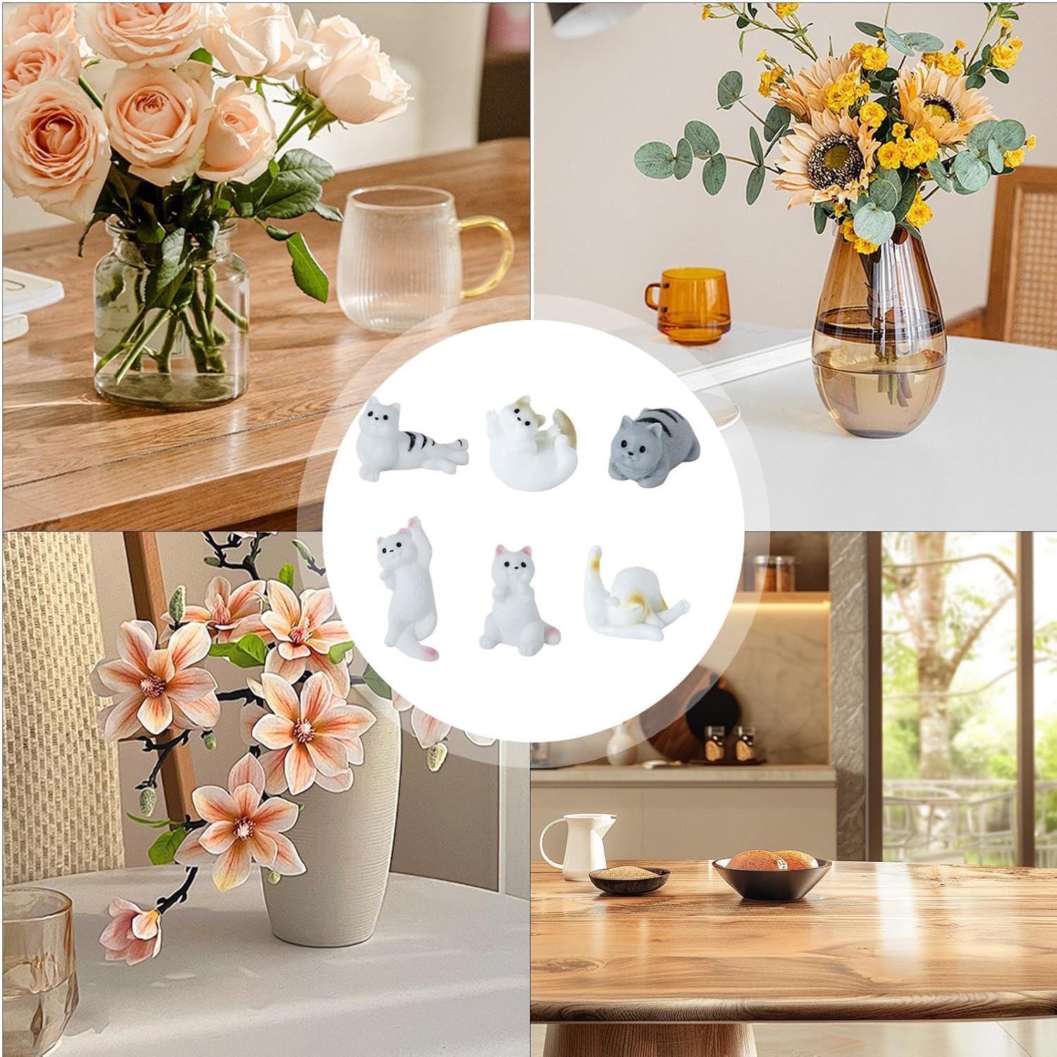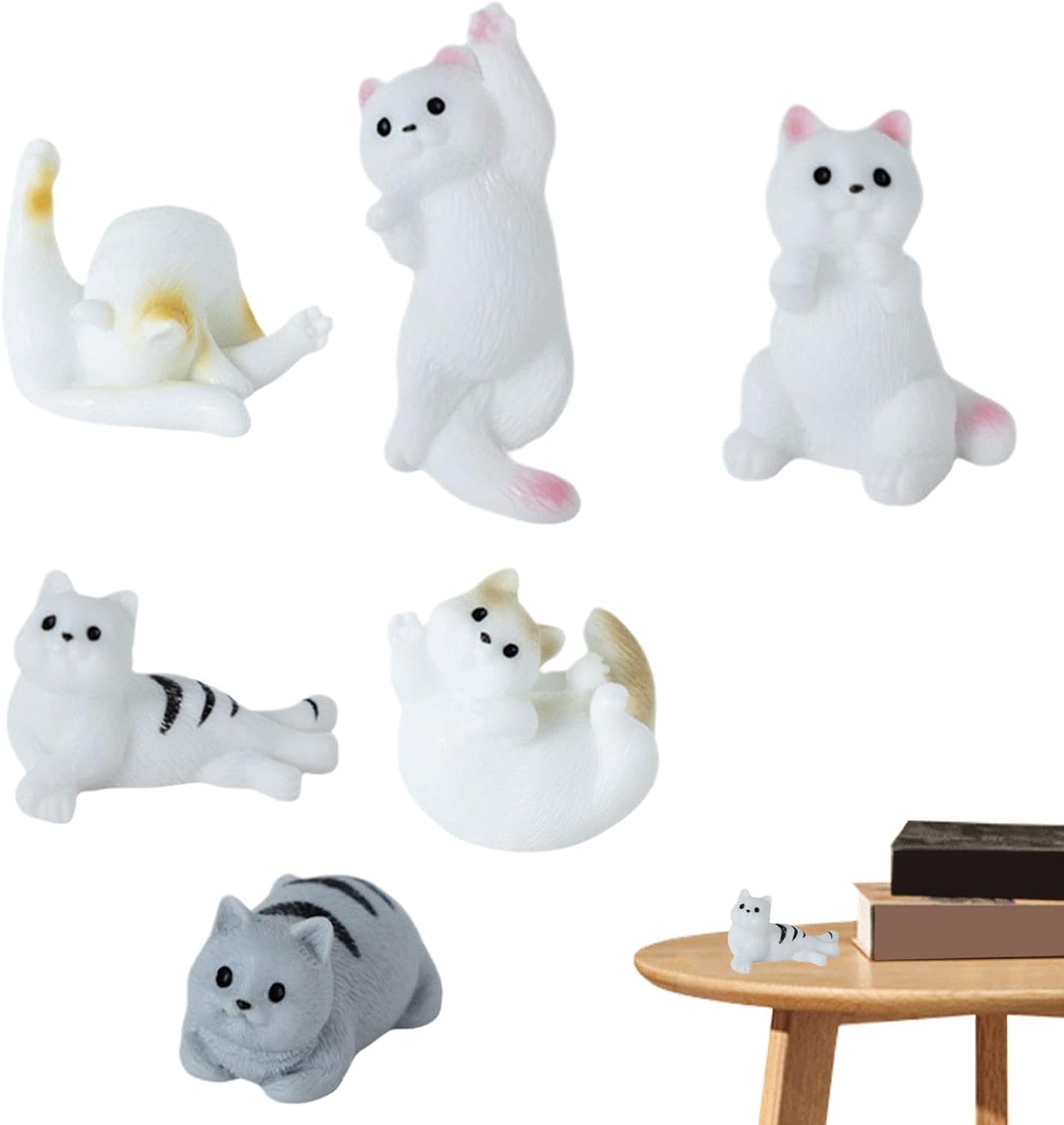Design innovativo: decora la tua casa con un tocco unico con questo set da 6 pezzi di figurine di gattini, ognuno caratterizzato da una posa unica che aggiungerà personalità a qualsiasi stanza. Con il loro design giocoso, queste statuette sono perfette per creare un'atmosfera stravagante nel tuo spazio. 【Qualità】 Il materiale in resina di alta qualità utilizzato nella produzione di queste statuette di gatti in miniatura garantisce un uso a lungo termine inodore e non è facile da deformare o danneggiare. Il risultato sono squisite figurine di gatti che garantiscono prestazioni di alta qualità. Ampiamente usato: queste figurine non sono solo una decorazione, ma creano un'atmosfera calda e bella, perfetta per rilassarsi e accendere la tua creatività. Ampiamente usato in piante grasse, piante in vaso e altre decorazioni vegetali. Queste figurine si integrano perfettamente in micro viste Lavorazione sofisticata: con un'eccellente fattura, queste figurine vivaci presentano dettagli intricati, consistenza liscia e design resistente allo sbiadimento, aggiungendo un tocco di eleganza alla tua stanza e comodo al tatto. Che si tratti di compleanni, vacanze o sorprese quotidiane, sono ideali per esprimere amore, gratitudine e felicità ad amici, familiari o colleghi