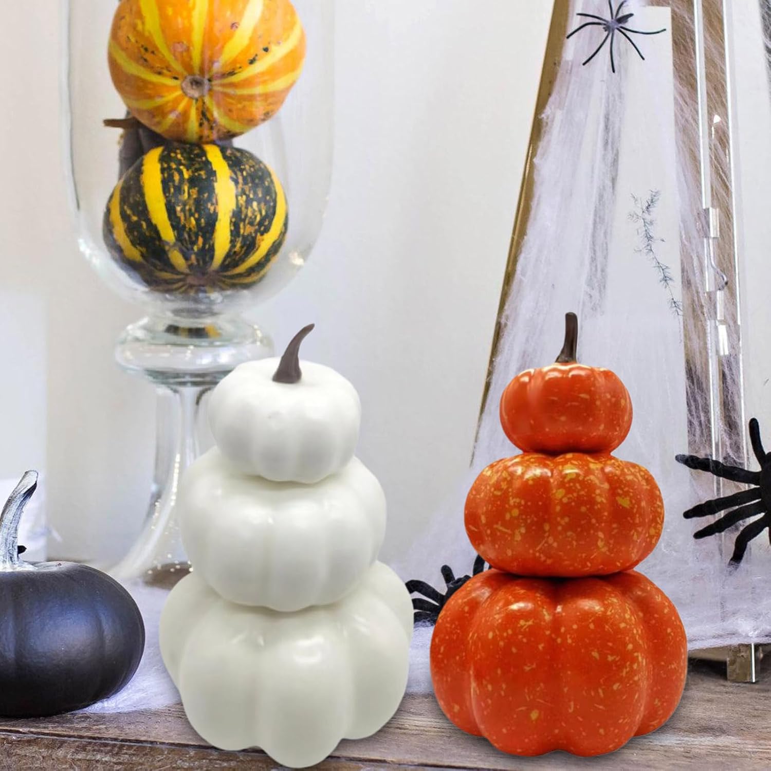 Crea ricordi a lungo termine con questo delicato set di decorazioni che cattura la sensazione di caduta Trasforma il tuo cortile, ufficio o spazio per eventi in un incantevole autunno con queste zucche decorative Ideale per famiglia, organizzatori di feste e appassionati di artigianato che cercano di aggiungere un tocco di fascino al raccolto alle loro feste di Halloween e Ringraziamento Realizzate in schiuma resistente, queste zucche realistiche vantano dipinte a mano per un display stagionale Migliora i tuoi decori festivi con il realistico set di zucche