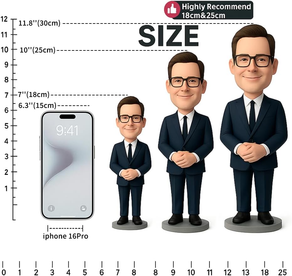 Regalo personalizzato: questo bobblehead personalizzato è realizzato a mano per assomigliare al tuo giocatore preferito, amico o persona cara, rendendolo un regalo unico per fidanzati, mariti o compagni di squadra per compleanni, San Valentino o anniversari. Realizzato a mano con argilla di alta qualità: ogni statuetta è accuratamente scolpita in argilla di alta qualità e dipinta con finiture resistenti, garantendo un omaggio realistico e duraturo alla tua passione da baseball. Dettagli personalizzabili: scegli numeri di maglia, colori della squadra, pose e caratteristiche del viso per creare un bobblehead unico nel suo genere. Perfetto per i fan della MLB, piccoli allenatori di campionato o appassionati di baseball fantasy! Ideale per ogni occasione: che si tratti di un regalo di pensionamento, una sorpresa di nozze o semplicemente un modo divertente per festeggiare un amante del baseball, questo bobblehead è un'idea regalo casalinga per uomini, donne e bambini. 【Servizio clienti】- Forniamo servizi di personalizzazione completi, tra cui anteprime di progettazione online e assistenza clienti 24/7. Il tuo bobblehead sarà accuratamente scolpito da artigiani esperti. Inoltre, offriamo opzioni di consegna flessibili per assicurarti di ricevere la tua creazione soddisfacente in modo tempestivo. Termini importanti di ordine: invieremo la prova facciale per la vostra conferma. Si prega di rispondere entro 12 ore; nessuna risposta sarà trattata come conferma. Una volta confermato, i rimborsi non sono accettati (a meno che non siano danneggiati durante il transito).