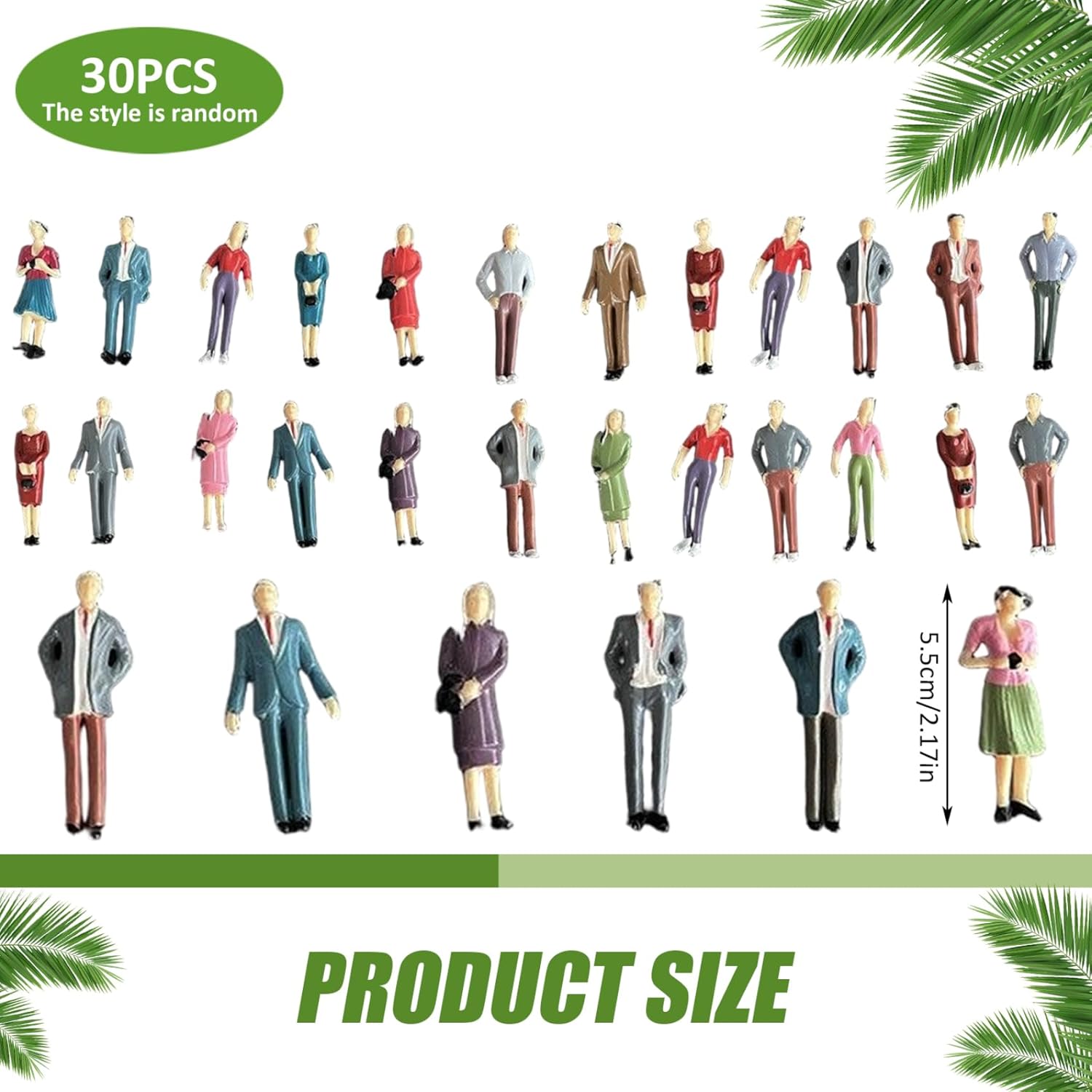 Costruzione di plastica stabile: realizzati in plastica sottile, queste mini figure sono leggere ma robuste, rendendole adatte all'uso decorativo interno o progetti di artigianato a lungo termine. Pacchetto di varietà di 30 figure: questo set include 30 persone in posa in modo univoco in colori e stili assortiti, dandoti molti personaggi per popolare scene e scintillare l'immaginazione. 1:30 Scala per una proporzione perfetta: progettata su una scala 1:30 e alte circa 2,2 pollici, queste mini persone si adattano perfettamente alle scene del modello, rendendole ideali per layout architettonico e display per hobby. Dettagli vividi e realistici: ogni figura in miniatura è accuratamente dipinta con espressioni realistiche e abiti colorati, portando fascino e realismo alle case delle bambole, alle scene del modello e ai diorami. Uso decorativo versatile: sia per le case delle bambole, i paesaggi dei treni, i progetti in classe o i mestieri fai -da -te, queste figurine migliorano qualsiasi scena creativa con carattere vibrante.