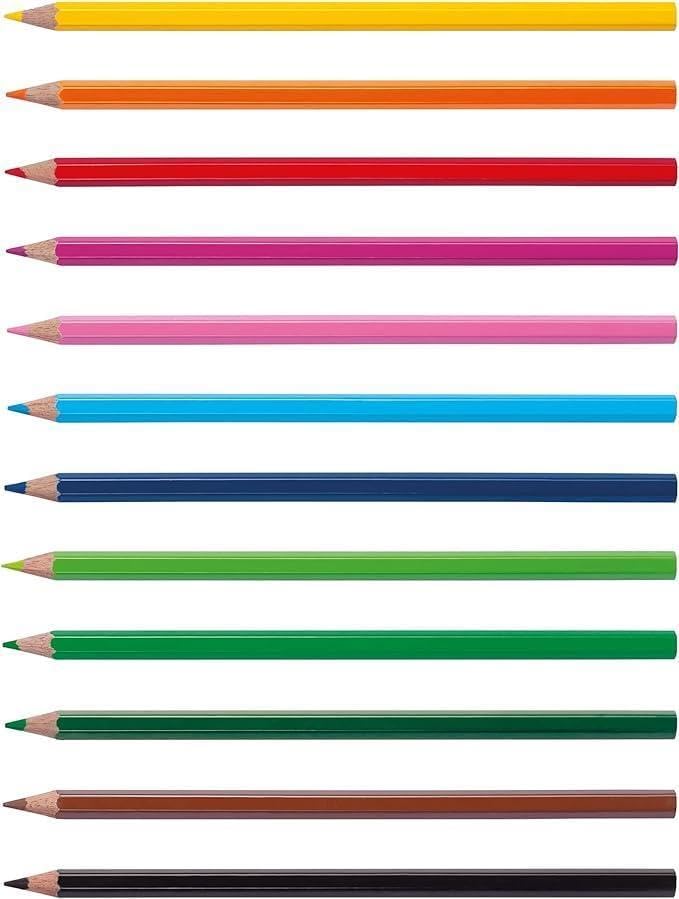 Pastello esagonale verniciato nel colore della mina, facile da temperare Lunghezza 18 cm Mina 2,8 mm Temperamatite incluso nelle confezioni Astuccio 36 pz