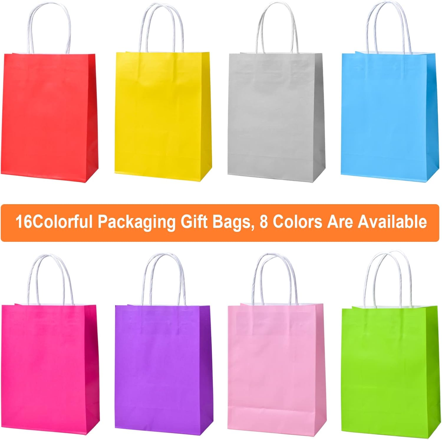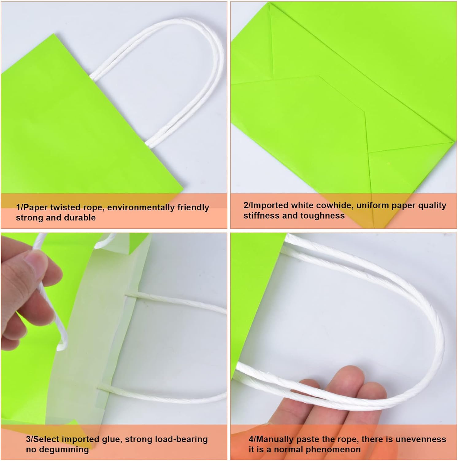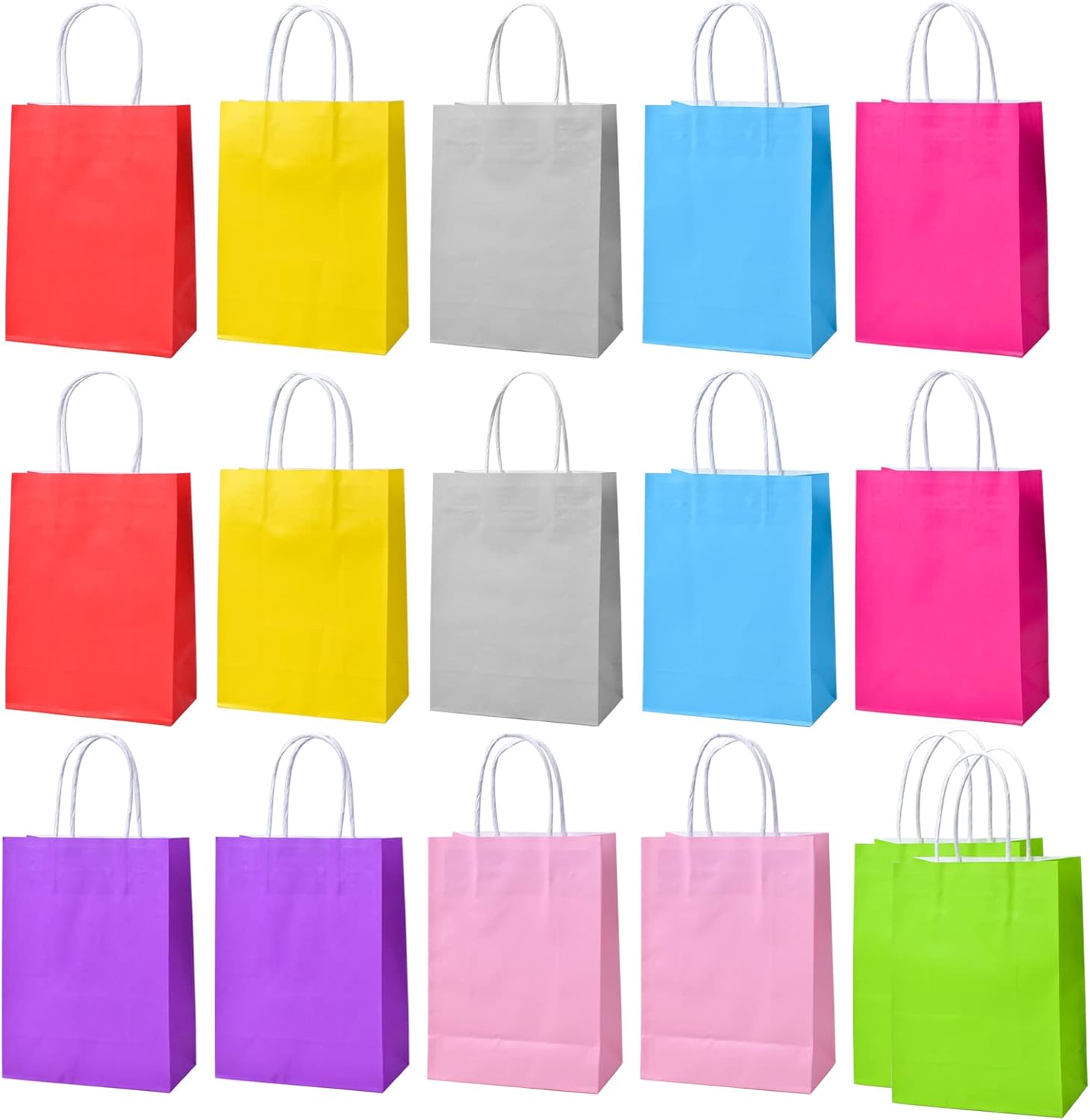 【Il pacchetto include】 Quantità e colore 16 borse nella carta che riceverai avranno 8 colori, grigio, blu, verde, giallo, viola, rosa, rosa rossa, rosso, 2 pezzi per altro colore. 【Dimensioni borse】 la mini borsa misura circa 16 x 8 x 22 cm/6,3 x 3,15 x 8,66 pollici (LWH). Realizzato in carta artigianale da 120 gsm che può sopportare un uso ripetuto 【Carta Kraft】 Queste borse per feste sono realizzate in carta artigianale da 120 gsm, spessa e robusta, non facile da rompere o poi neggiare, che può soddisfare i tuoi usi ripetuti; Per ogni colore sono sufficienti 8 colori. adatto per l'utilizzo in vari eventi. 【Ampia applicazione】può essere applicata a feste di Laurea, Pasqua, feste di compleanno, feste estive, Natale, matrimoni e altre cerimonie. Buone dimensioni per il contenuto dell'immagine e la decorazione della festa 【Richiamo caldo】 Queste borse fatte a mano possono avere odore sono innocue e prive di tossine, si prega di ventilare prima dell'uso. Se il prodotto risulta grasso in mano, è possibile consumarlo dalla colla attaccata alla carta, fare attenzione quando la si apre.