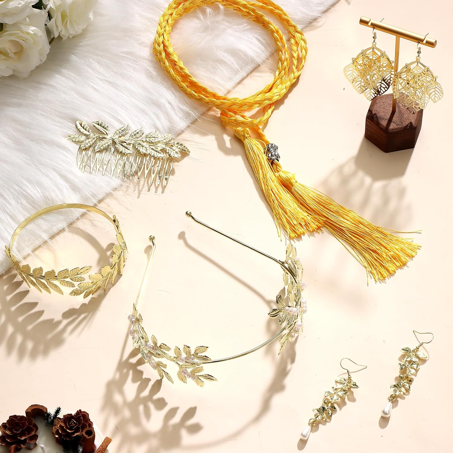 Sono esteticamente belli e perfetti per eventi speciali, come Carnevale o serate a tema. Il design elegante, con la fascia per capelli a forma di foglia, il bracciale e i pendenti, aggiunge un tocco sofisticato. Pur essendo bigiotteria, sono ideali per completare un look da dea greca o altre occasioni particolari. Li consiglio a chi cerca un dettaglio speciale per un evento