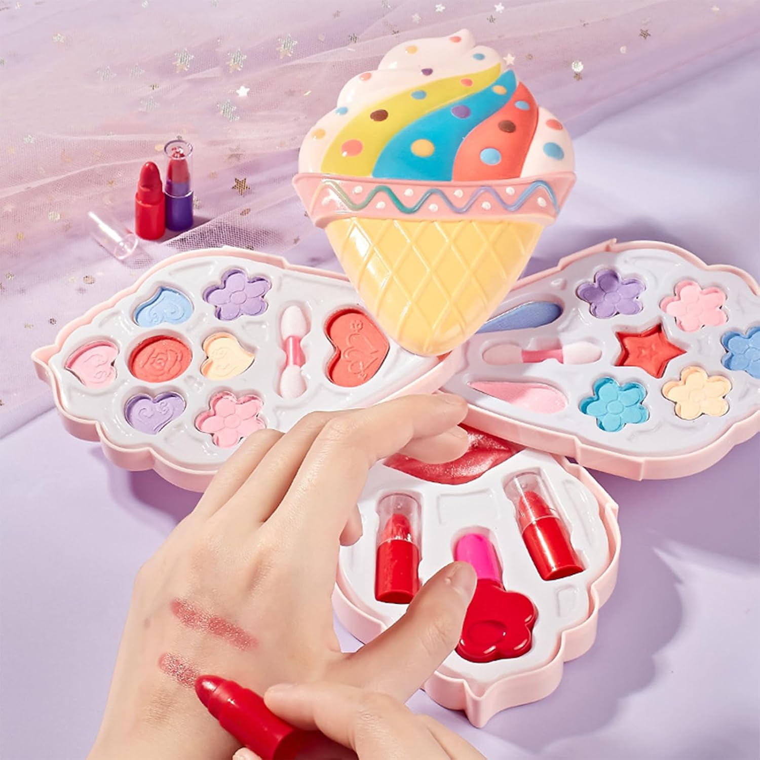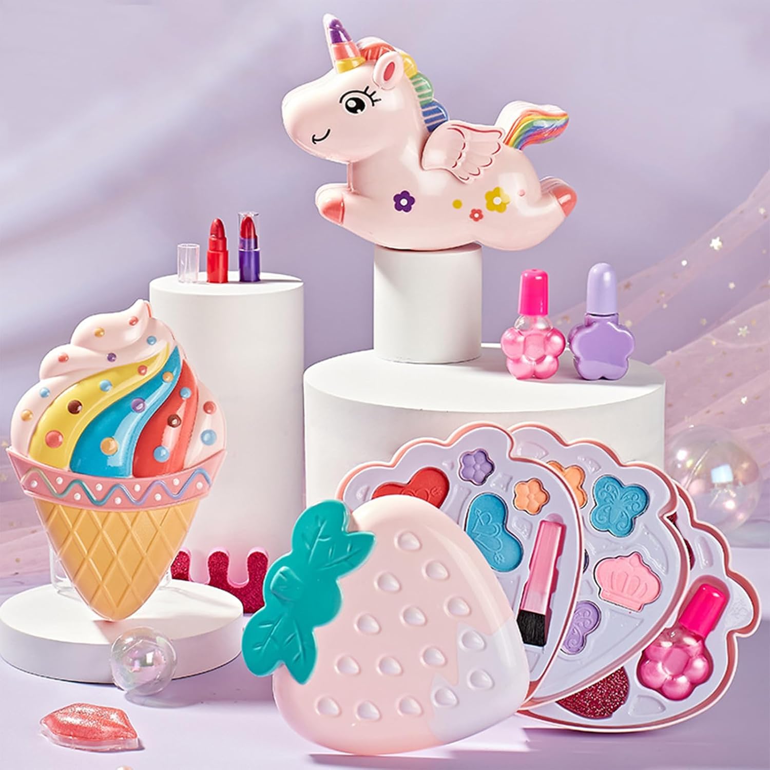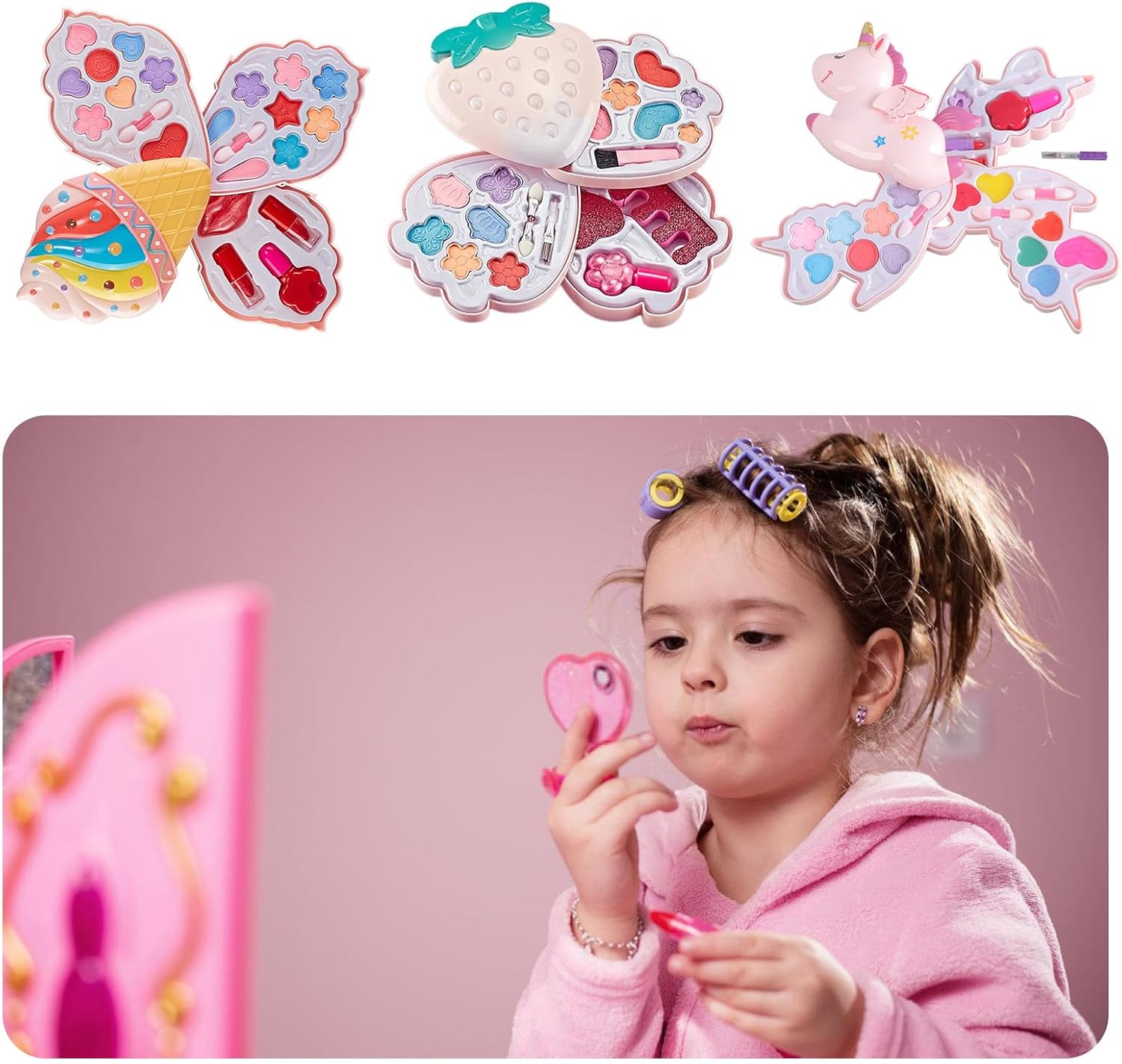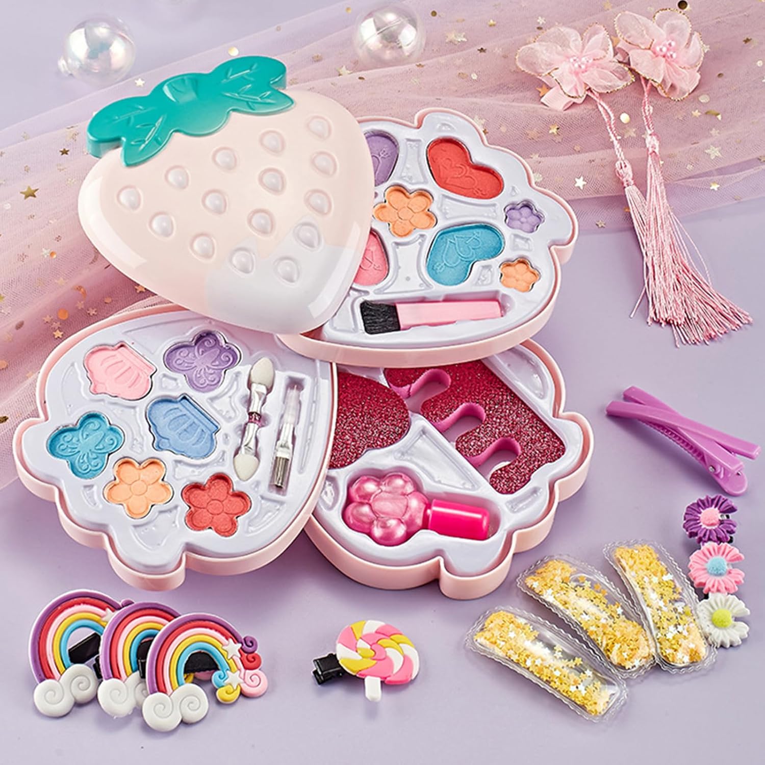 Questo giocattolo per il trucco da ragazza manterrà la tua bambina eccitata. Include tutto ciò che la ragazza potrebbe desiderare nel suo primo set di trucco. È per ogni occasione, dal compleanno al Natale Questo set di cosmetici viene fornito con una borsa cosmetica portatile per una facile conservazione di questi prodotti cosmetici, consentendo al bambino di diventare quella bambina La bellezza è la natura di tutti. Il nostro set di cosmetici per bambini viene fornito con molti accessori che faranno cultura e stimoleranno la creatività, l'immaginazione, l'abilità estetica e la capacità di apprendimento pur avendo felicità Questo set di fragole include ombretto, fard e scatola cosmetica portatile Materiali sicuri, a base d'acqua, morbidi sulla pelle