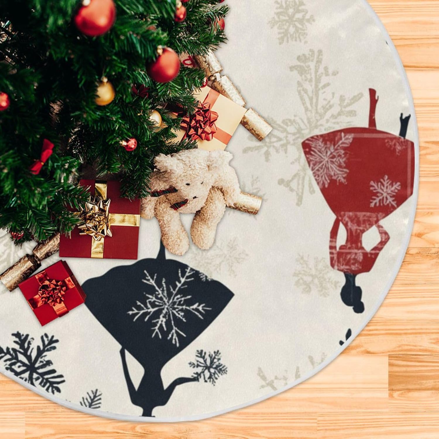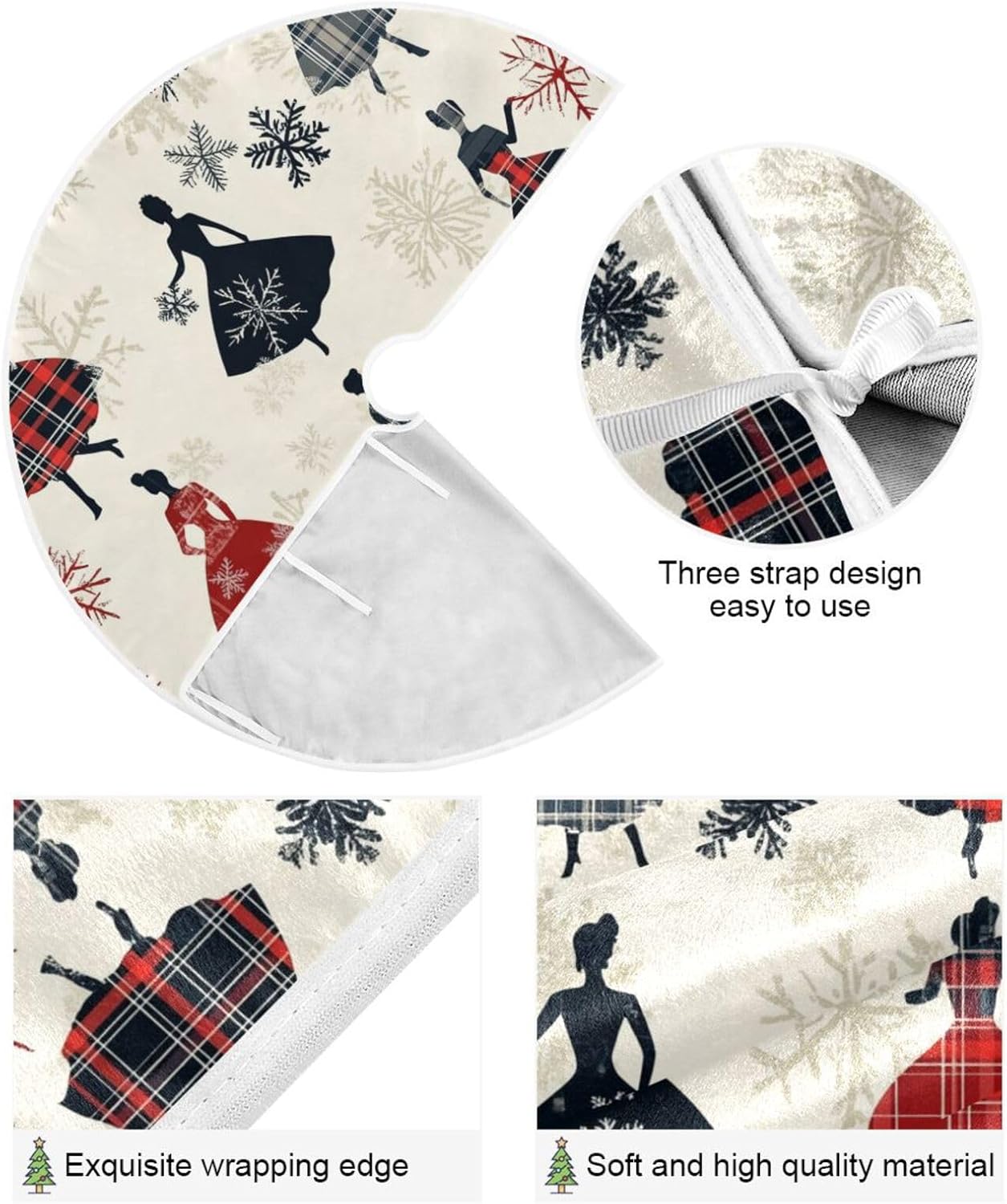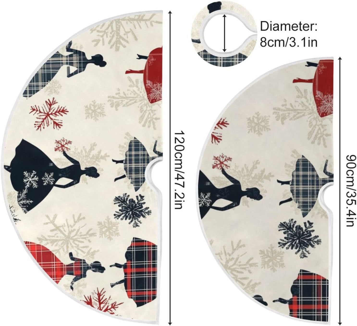 Diametro di grandi dimensioni: 48 pollici (120 cm), dimensione per qualsiasi albero di Natale. Puoi mettere tanti regali sulla gonna dell'albero e sulle decorazioni natalizie e decorare perfettamente il tuo albero di Natale. 【Materiale】Le gonne per alberi sottili sono realizzate in tessuto di poliestere, che non fa pieghe e facile da riporre. Queste gonne per alberi sono squisitamente realizzate con bordi delicati che non sono facili da staccare.,Ampio utilizzo: ottima decorazione per i tuoi alberi da vacanza interni ed esterni. Puoi usare le gonne dell'albero di Natale a casa, in soggiorno, in cortile, a scuola, in negozio, in ufficio, in un bar, in un hotel, in un supermercato, in un ristorante, ecc. Meravigliosa decorazione per gli alberi delle feste del tuo festival (Halloween, Giorno del Ringraziamento, Natale, San Valentino, ecc.). Ottima scelta anche per cosplay, cerimonie annuali, eventi della comunità, saldi, promozioni, spettacoli teatrali, decorazioni per feste. Facile da installare: design aperto, facile da installare, decorazioni per albero di Natale con 3 cinturini. Le chiusure in velcro sono orlate sul bordo della gonna dell'albero, facili da fissare. Puoi mettere gli ornamenti che ti piacciono sulla gonna dell'albero per ottenere più decorazioni natalizie. Multifunzionale: posiziona la gonna dell'albero di Natale sul fondo dell'albero, può essere un bel regalo per la tua famiglia e i tuoi amici. Inoltre, la gonna per albero di Natale è perfetta per nascondere i telai dell'albero e tutte le corde leggere, per coprire il supporto dell'albero, per mantenere i pavimenti puliti da aghi di pino o linfa degli alberi e fornisce un posto dove appoggiare i regali