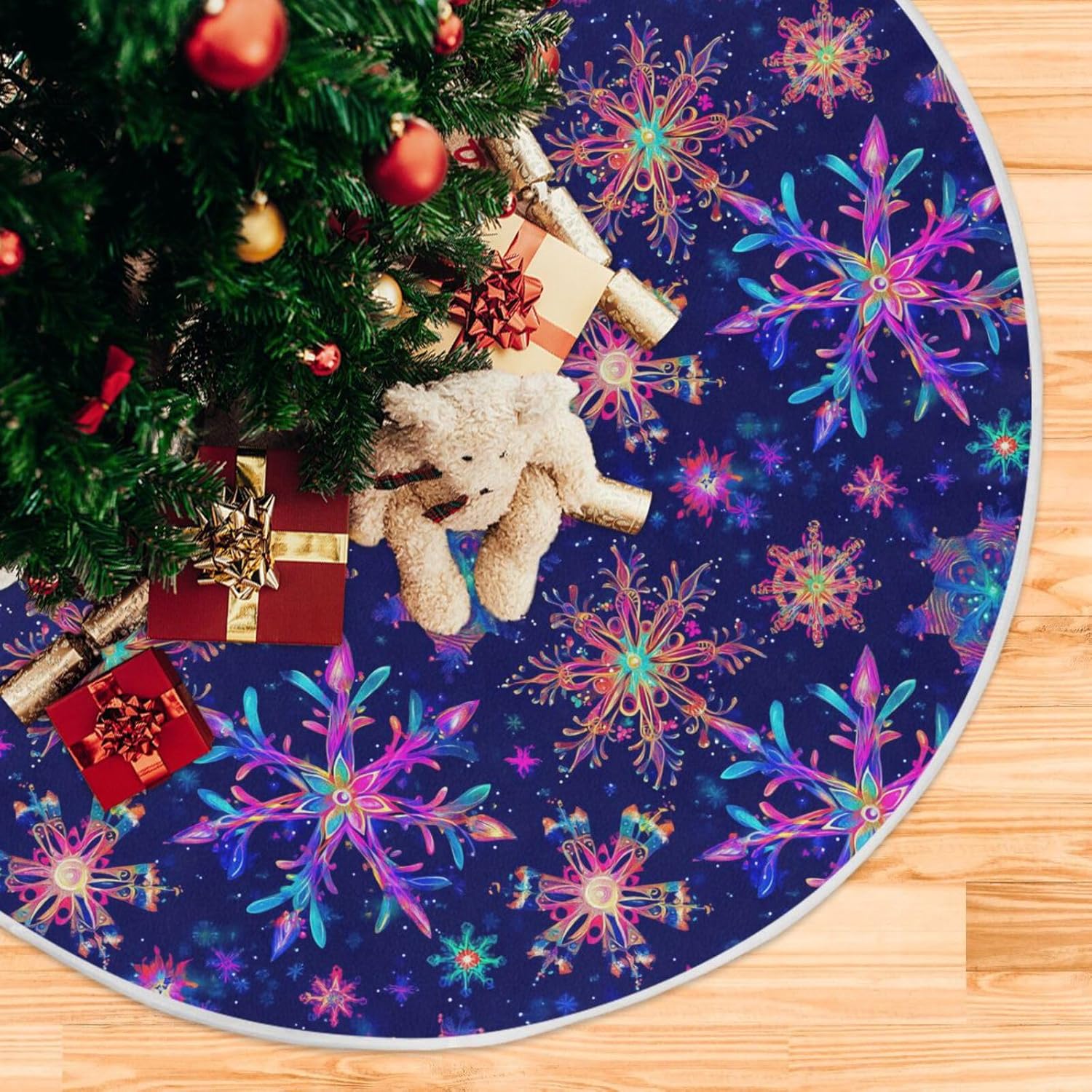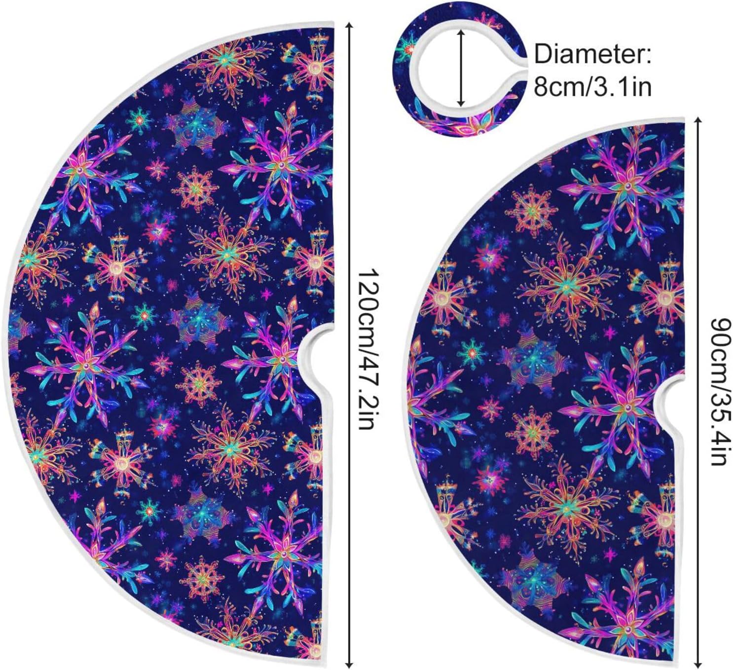 Due misure tra cui scegliere: la gonna per albero di Natale grande è di 120 cm, la gonna per albero di Natale piccola è di 90 cm. Materiale: 100% poliestere Gonna per albero Decorazione natalizia Elegante, confortevole e morbida al tatto, regala un'atmosfera festosa calda e forte e porta lo spirito natalizio attraverso le decorazioni dell'albero di Natale. 【Ampio utilizzo】 Ottima decorazione dei tuoi alberi delle vacanze per uso interno ed esterno. Puoi utilizzare le decorazioni natalizie della gonna per albero a casa, soggiorno, cortile, scuola, negozio, ufficio, bar, hotel, supermercato, ristorante, ecc. Meravigliosa decorazione per gli alberi delle feste del tuo festival (Halloween, Giorno del Ringraziamento, Natale, San Valentino, ecc.). Ottima scelta anche per cosplay, cerimonie annuali, eventi della comunità, saldi, promozioni, spettacoli teatrali, decorazioni per feste. Design di apertura semplice e pratico, facile da installare e smontare. Il design a tre cinghie rende la gonna dell'albero più forte. Lo squisito bordo avvolgente mostra la qualità superiore della gonna dell'albero di Natale. REGALO UNICO PER LA FESTA DELLA MAMMA - Questa generosa gonna rustica per albero è anche un bel regalo di Natale per la tua famiglia o i tuoi amici. Porta più atmosfera da festival a casa tua, mostra la tua unicità. Decorazione domestica perfetta per San Valentino, festa della mamma, Natale, Halloween, cosplay, feste di Capodanno, matrimoni, fidanzamenti, anniversari, eventi della comunità, spettacoli teatrali. Ottima scelta per decorazioni natalizie commerciali.