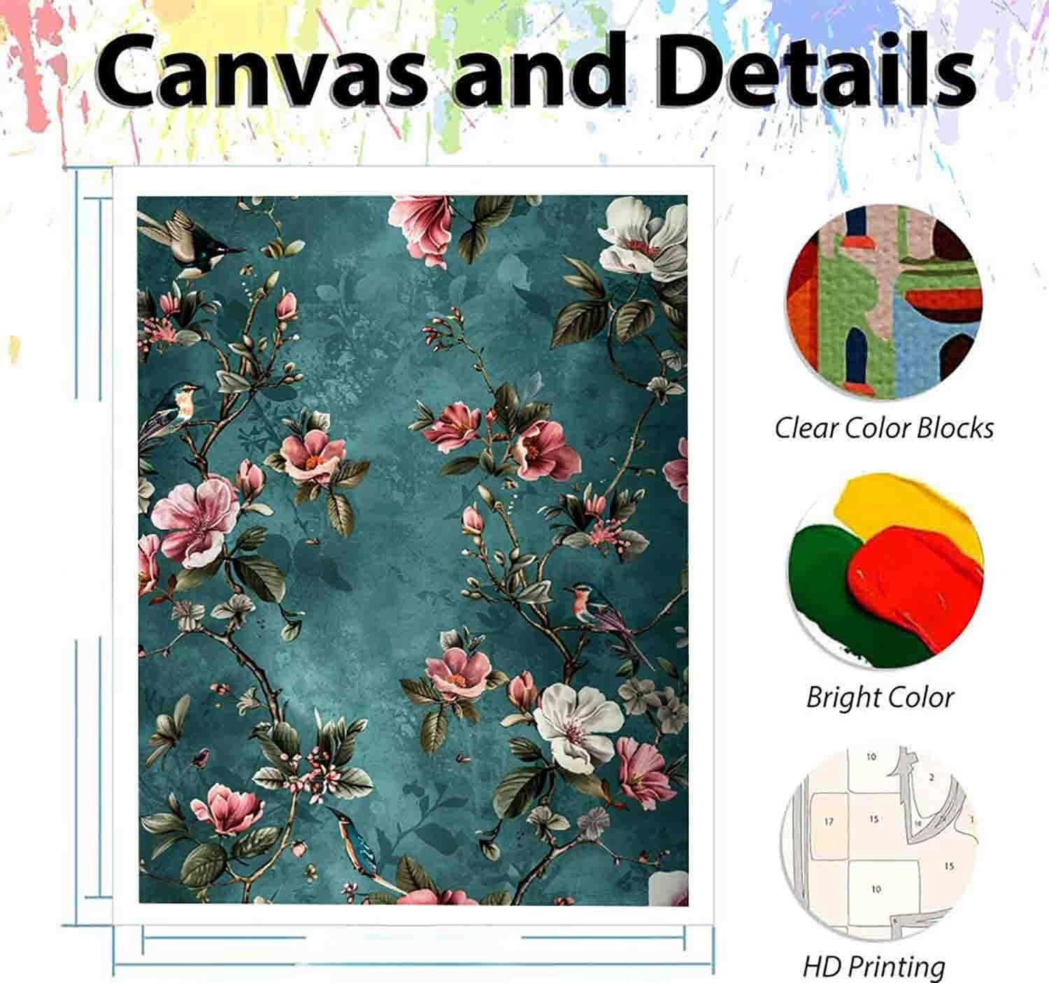 Fiore Dipingere con i Numeri Albero Dipingere con i Numeri Adulti Bambini Fai Da Te Paint by Numbers con Pennelli e Pigmento Acrilico Kit per Tela Antipiega Decora la Casa 50x65cm (senza Cornice) s-E4