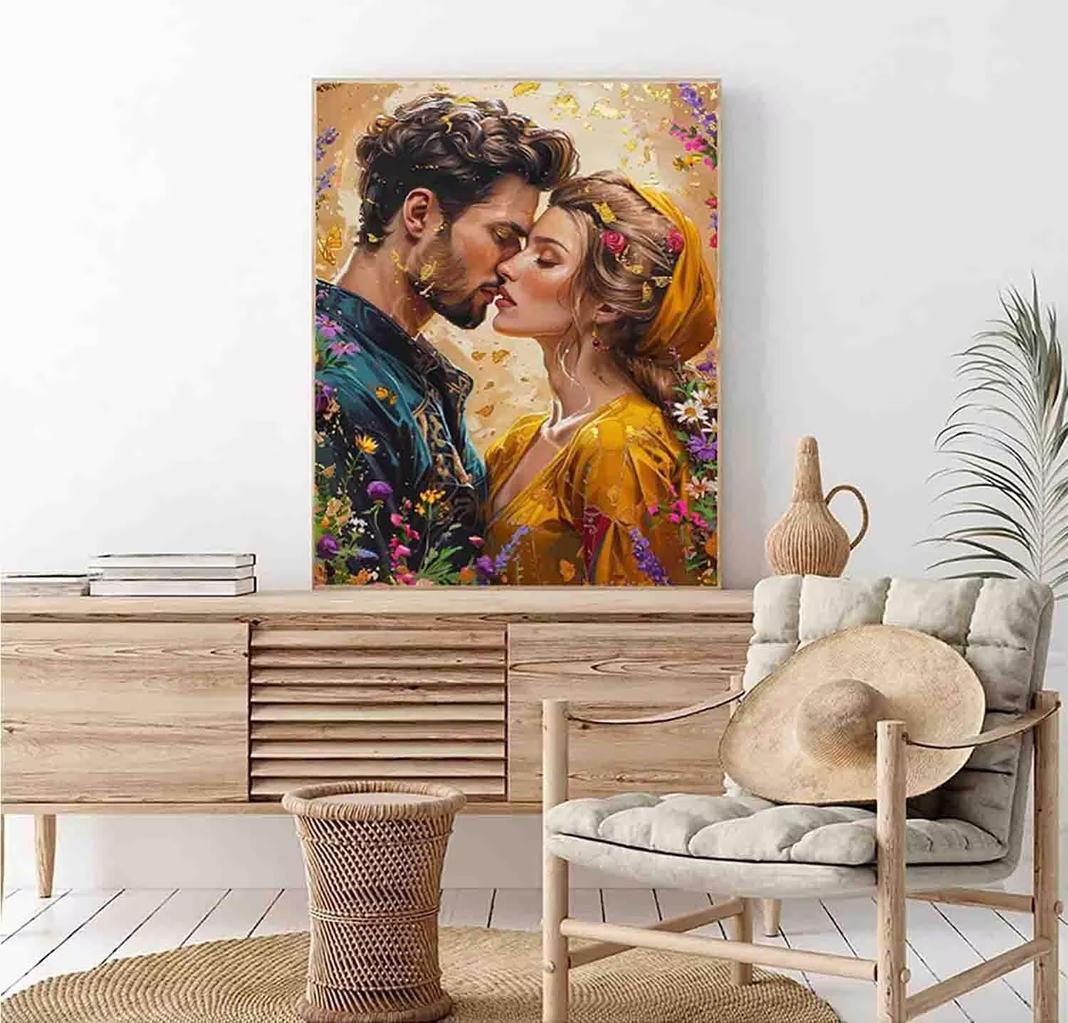 Fiore Dipingere con i Numeri Coppia Dipingere con i Numeri Adulti Bambini Fai Da Te Paint by Numbers con Pennelli e Pigmento Acrilico Kit per Decorazione da Parete 100x135cm (senza Cornice) d-U7