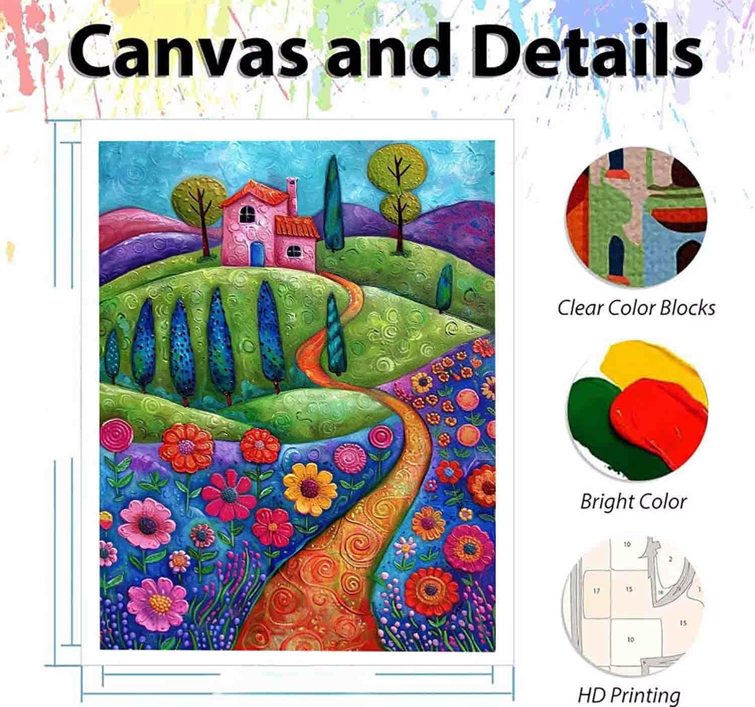 Fiore Dipingere con i Numeri Montagna Dipingere con i Numeri Adulti Bambini Fai Da Te Paint by Numbers con Pennelli e Pigmento Acrilico Kit per Decorazione da Parete 70x95cm (senza Cornice) s-Z6