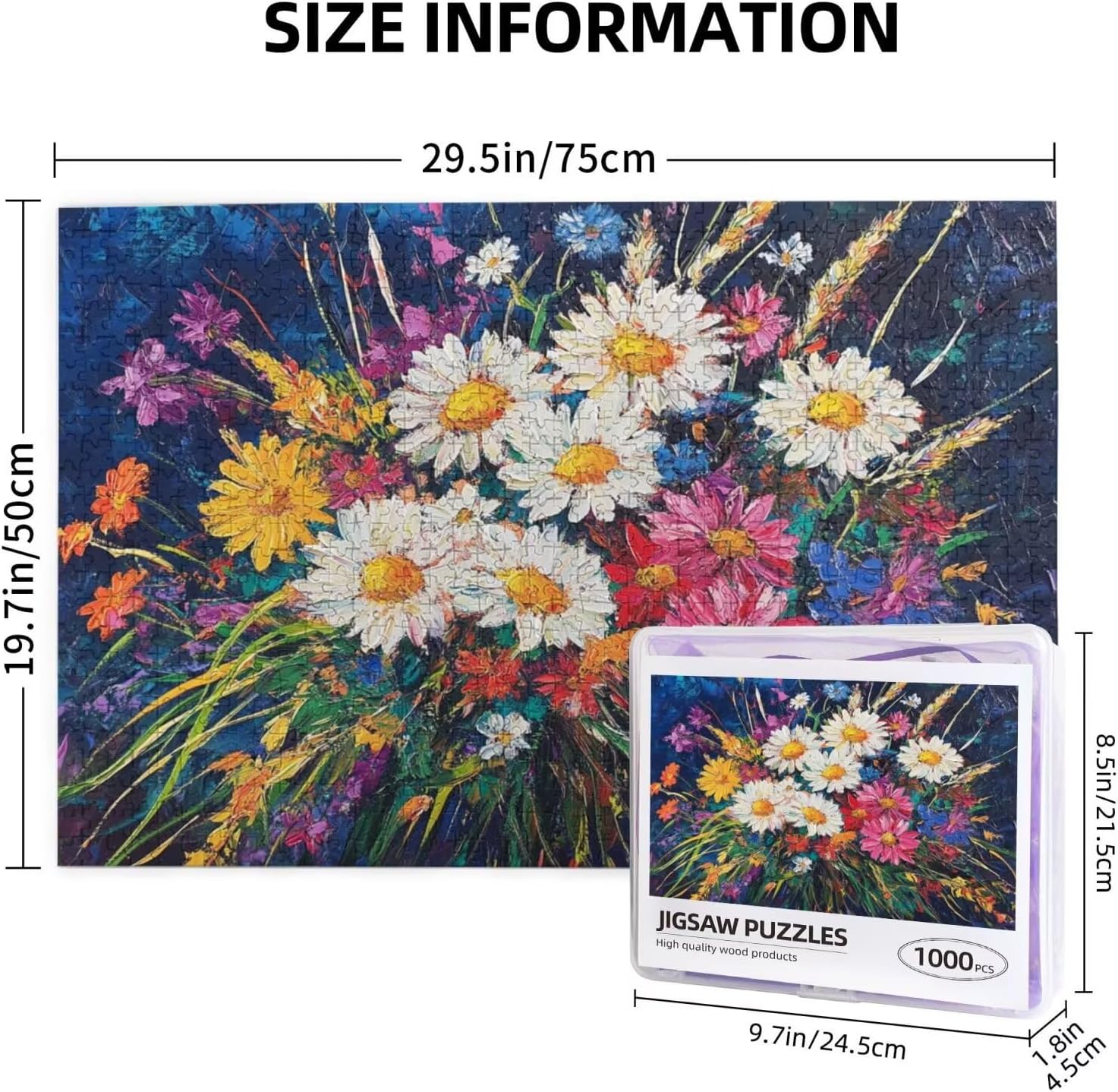 Fiore Puzzle 2000 Pezzi Adulti, 5D DIY Puzzle Margherita Pattern Design con Confezione Regalo per Regalo Donna, Attività Famiglie Impegnative Principianti per Home Wall Bedroom Decor 99 x 70 cm -1735Y