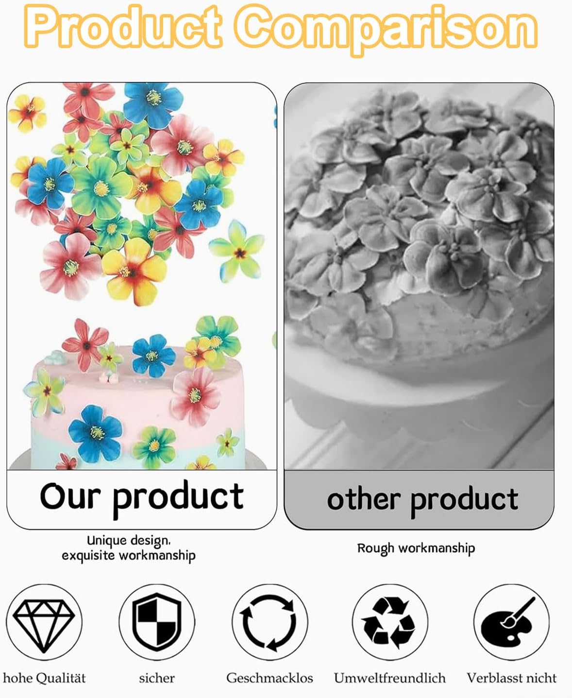 Decorazioni per torte a forma di fiori commestibili: circa 100 decorazioni per cupcake. Questi fiori decorativi aggiungono un tocco elegante e affascinante ai tuoi dessert. Realizzati con materiali di alta qualità, questi fiori decorativi sono perfetti per decorare torte, muffin, cupcake e altri dessert. Ampia gamma di usi: adatti a tutti i tipi di celebrazioni. I nostri fiori commestibili sono versatili e adatti a ogni occasione. Che si tratti di un matrimonio, un compleanno, il Capodanno cinese, una festa in giardino o una festa a tema, questi fiori sono adatti a qualsiasi occasione. Materiale di alta qualità: fiori di carta di riso commestibili. Le nostre decorazioni floreali per cupcake sono realizzate in carta di riso commestibile di alta qualità. Questo materiale è leggero e robusto, garantendo che i fiori mantengano la loro forma. È inodore e senza zucchero, quindi non altera il sapore del dessert nemmeno come decorazione. Facili da usare e versatili: usare i nostri fiori commestibili è semplice e intuitivo. Rimuovi i fiori dalla scatola e posizionali direttamente sull'impasto. Non sono necessari strumenti speciali. Questi fiori possono essere facilmente applicati a qualsiasi tipo di torta, cupcake o dessert per un look sorprendente immediato. Servizio clienti e garanzia di soddisfazione: attribuiamo grande importanza alla soddisfazione del cliente. Per qualsiasi domanda sul prodotto o sul suo utilizzo, non esitate a contattare il nostro servizio clienti.