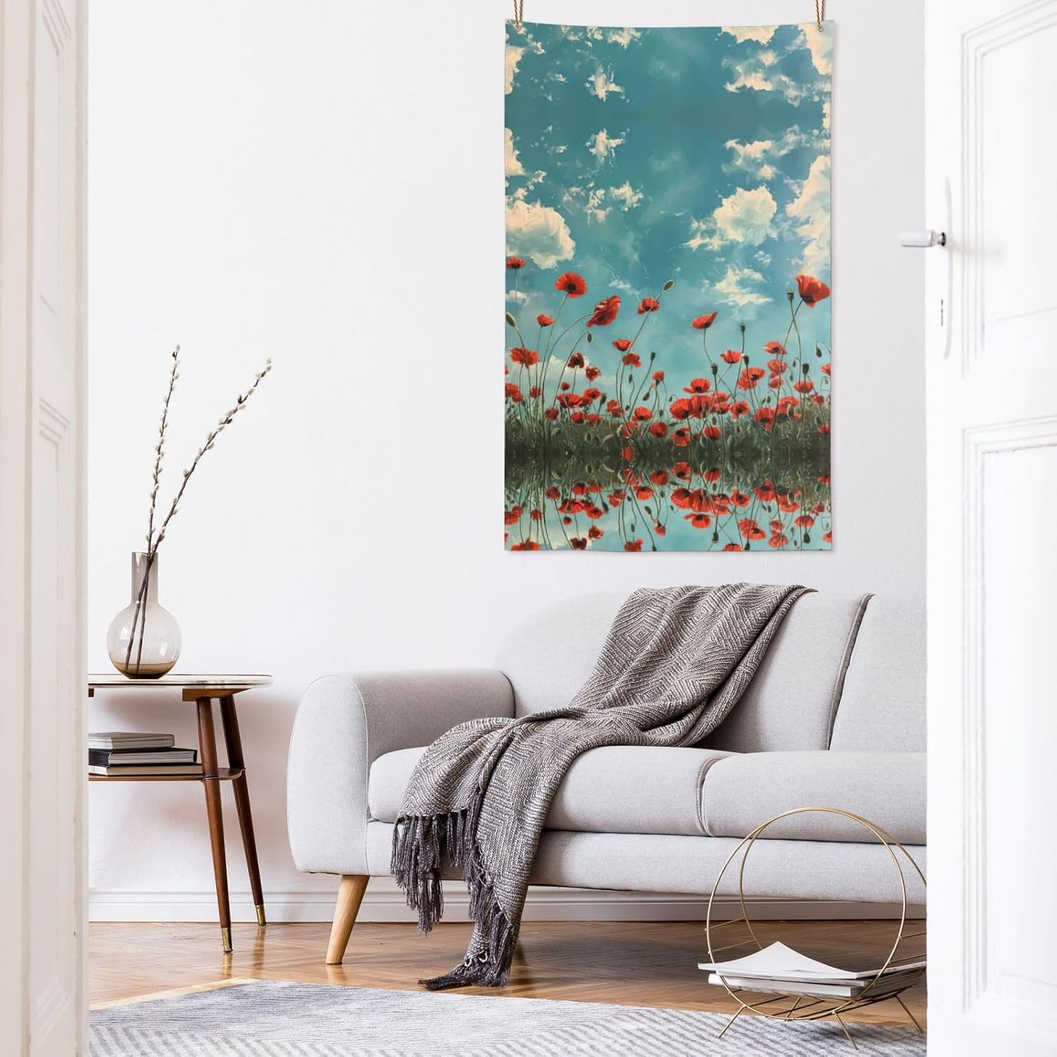 Fiori di papavero sul cielo azzurro Bandiere decorative per cortile esterno, patio, compleanno, laurea, festa, striscione 9,1 x 1,8 m