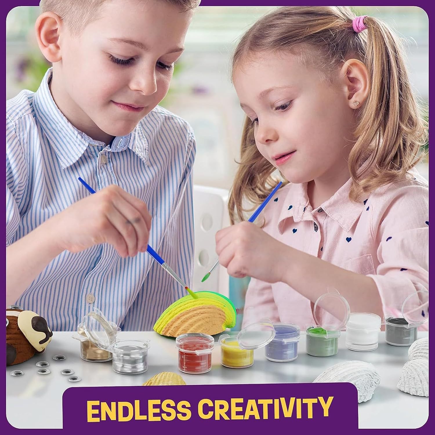 Questo kit completo per arti e mestieri include vernici e pennelli, garantendo un divertimento e sicurezza per gli artisti Guarda come tuo figlio mostra con orgoglio le sue conchiglie dipinte, creando una galleria d'arte luminosa che mette in mostra la sua immaginazione e porta a casa un pezzo del mare Accendi la creatività del tuo bambino con i nostri kit di pittura a conchiglie per bambini, con vernici luminose che trasformano semplici conchiglie in tesori notturni Adatto per bambini dai 6 ai 12 anni, questo set di pittura a conchiglia è un ottimo modo per sviluppare abilità motorie e espressione artistica sia in ragazzi che in ragazze Ideale per feste di compleanno, attività educative o come regalo di Natale unico, offre ore di intrattenimento creativo