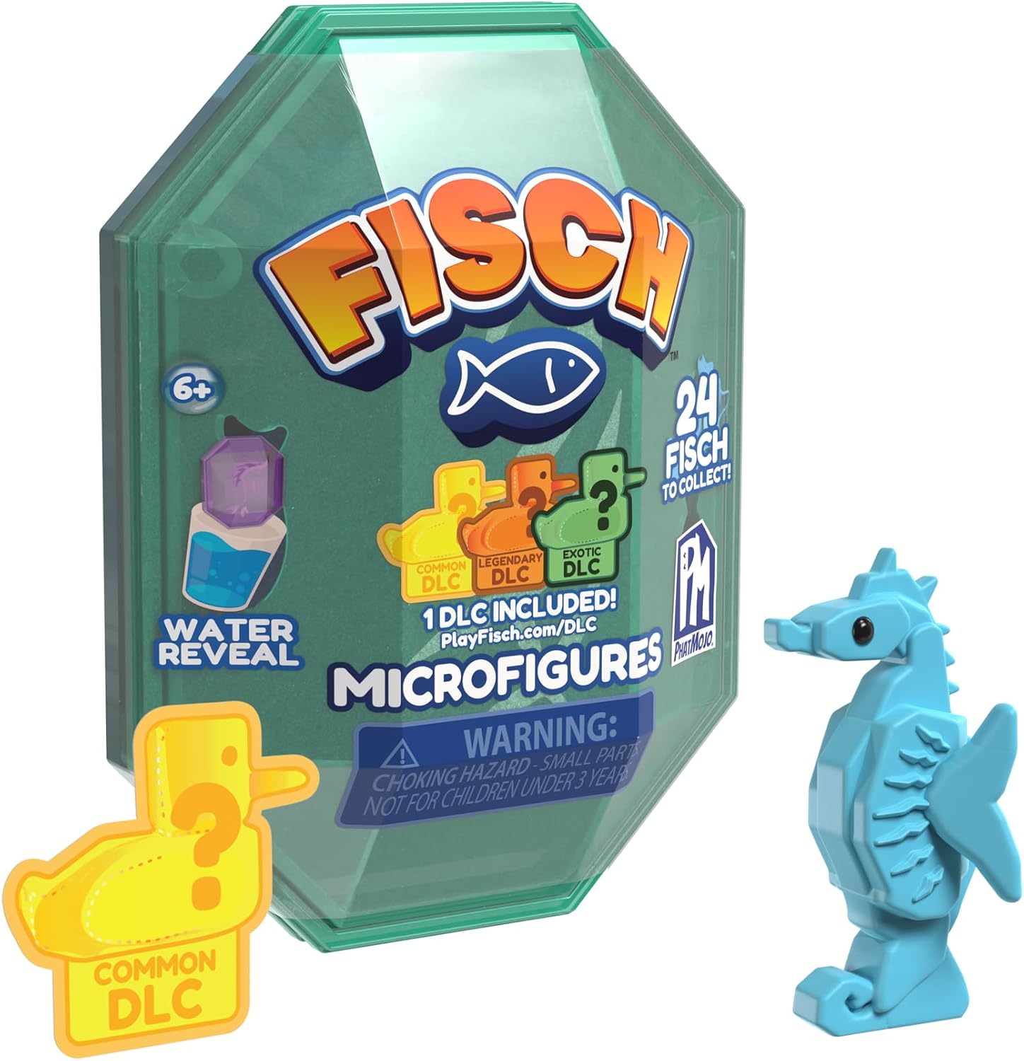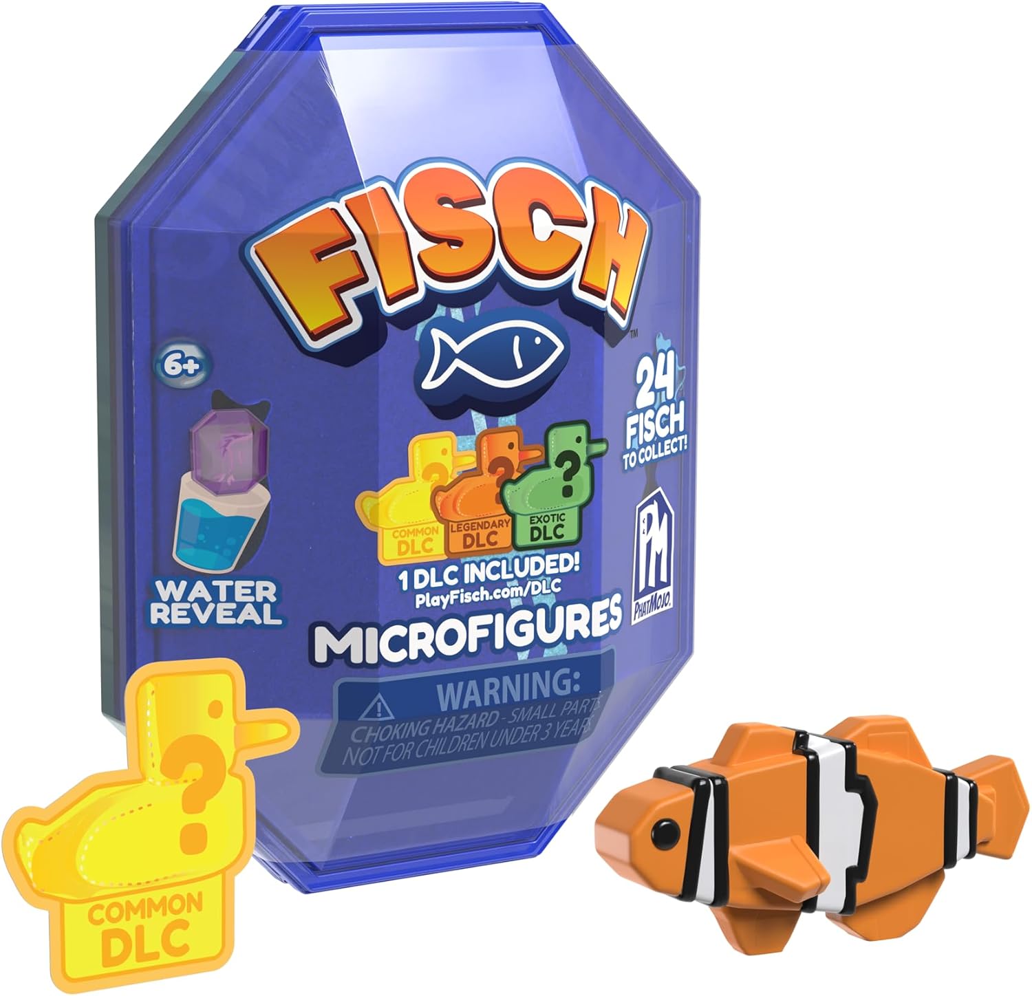 Vivi l'avventura Fisch: esplora gli oceani e raccogli pesci ispirati al popolare gioco Roblox. Micro figure da 5 cm: ogni figura è accuratamente progettata per adattarsi al mondo di gioco. Capsula magica: immergila nell'acqua per sciogliere la capsula e rivelare il tuo pesce a sorpresa. Codice DLC incluso: sblocca contenuti esclusivi e arricchisci la tua esperienza in Fisch. 24 pesci da collezionare: catturali tutti per ricreare le tue avventure Fisch nella vita reale.