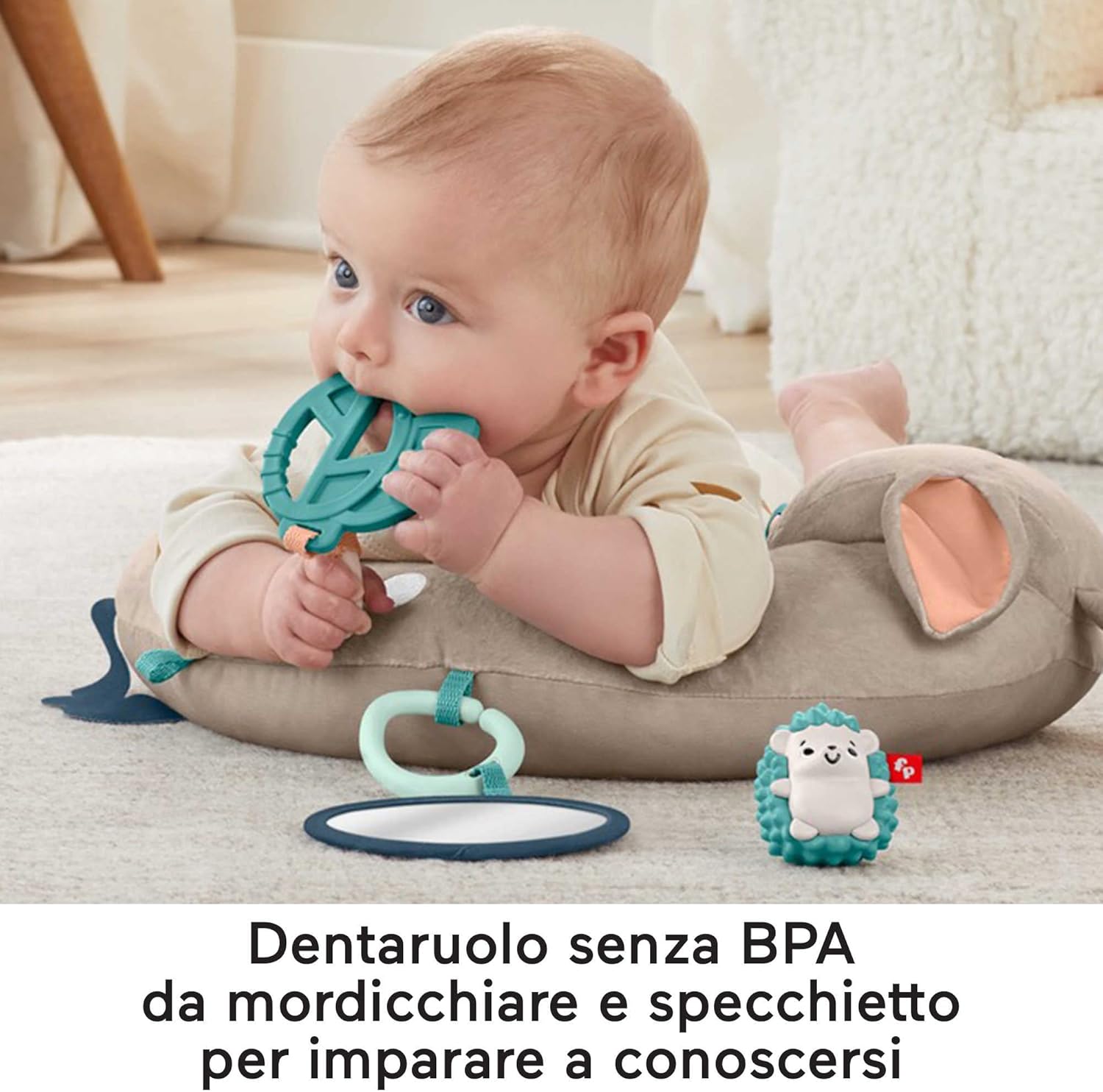 Cuscino a forma di cerbiatto soffice e di supporto con giocattoli attività Lo specchietto collegabile (0+) aiuta il tuo bambino a scoprire la sua tenera immagine riflessa, mentre il dentaruolo senza BPA (0+) allevia la dentizione Il riccio sonaglino (3M+) aggiunge divertimento sensoriale per i bambini più grandi Il cuscino per il gioco distesi sul pancino è lavabile in lavatrice per pulirlo in modo pratico Il prodotto è contenuto in una confezione facile da aprire, riciclabile al 100%. Cuscino a forma di cerbiatto soffice e di supporto con giocattoli attività Lo specchietto collegabile (0+) aiuta il tuo bambino a scoprire la sua tenera immagine riflessa, mentre il dentaruolo senza BPA (0+) allevia la dentizione
