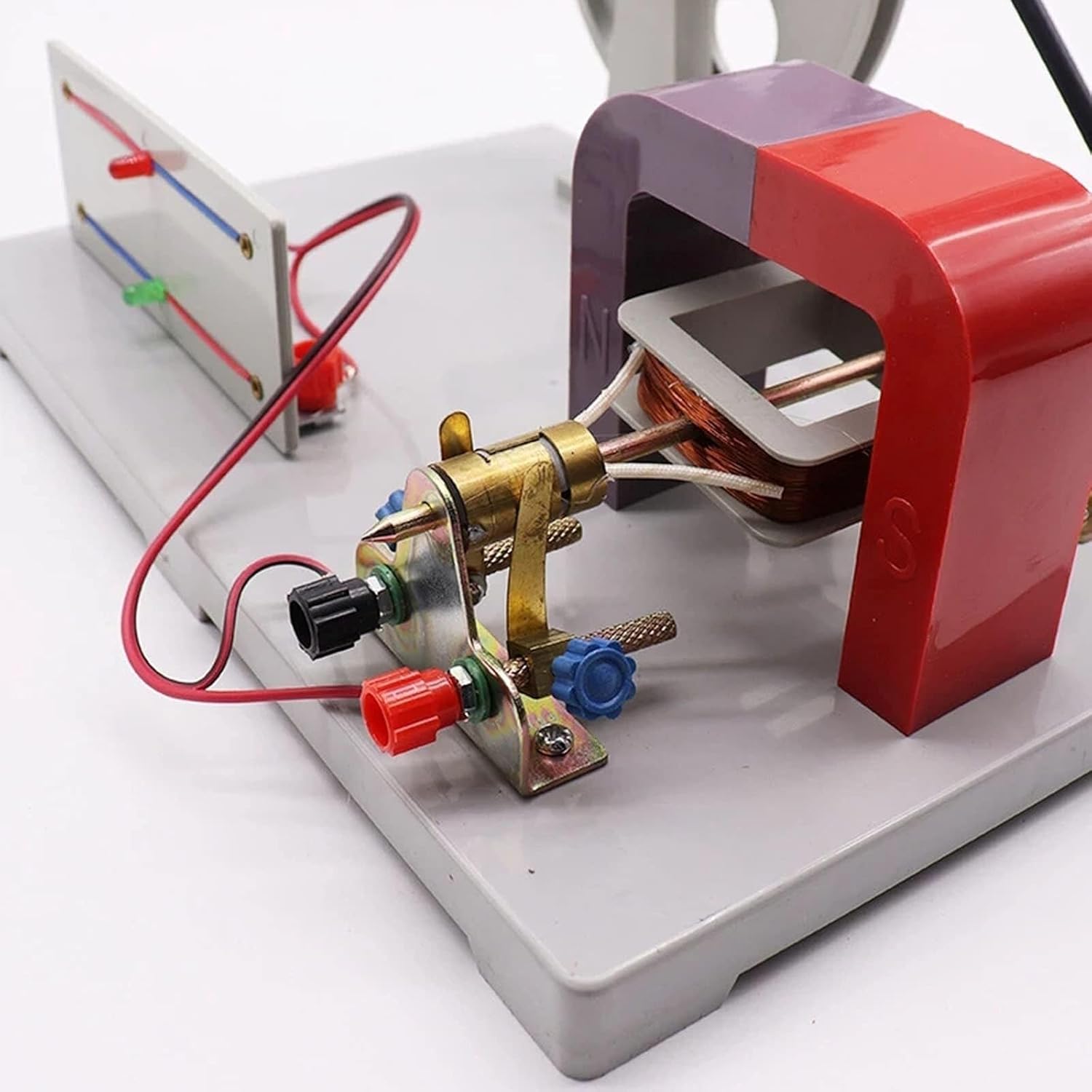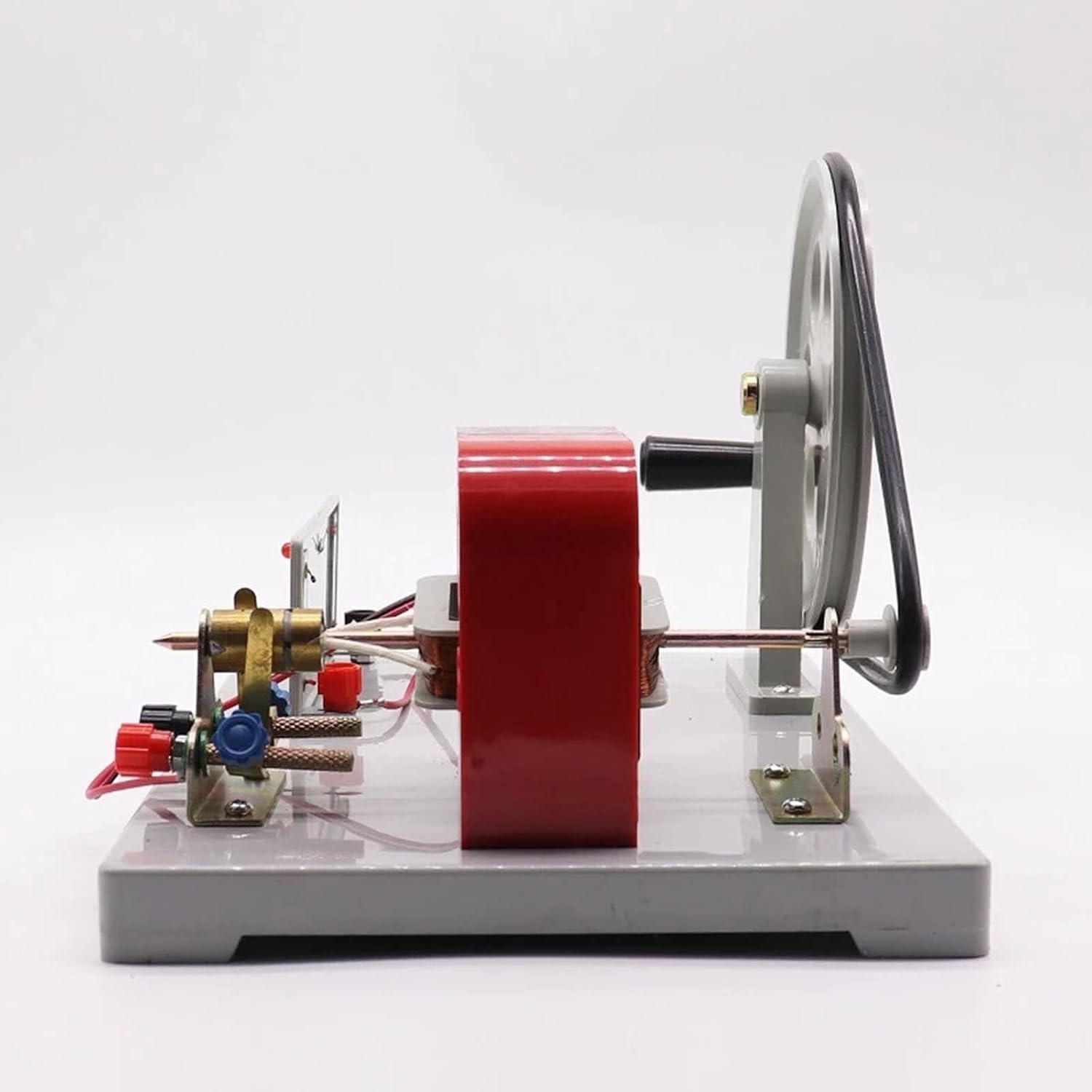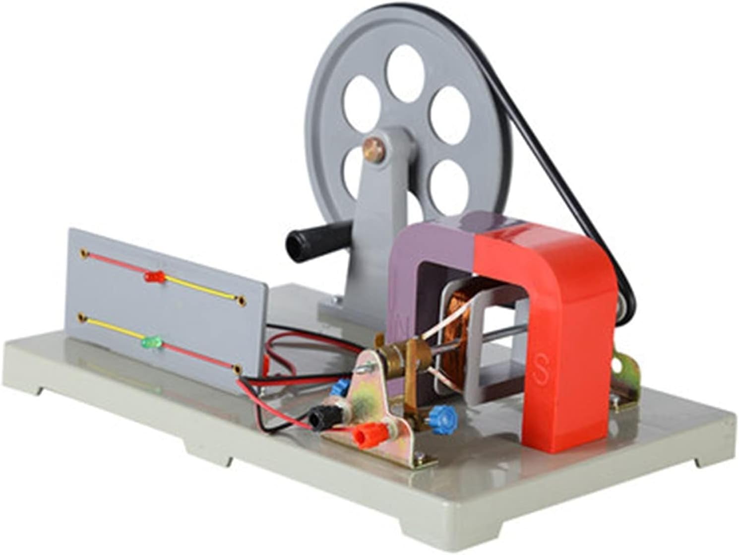 Questa macchina viene utilizzata per insegnare la struttura di base e il principio di funzionamento dei generatori di corrente alternata e continua nell'insegnamento della fisica alle scuole medie e delle nozioni naturali alle scuole elementari. Questo strumento è un generatore ad indotto rotante a magnete permanente, composto da uno statore, un rotore, spazzole, una piastra di base e un meccanismo manuale. Quando la velocità del rotore è 1200-1600/min, la tensione di uscita della macchina, la tensione a vuoto non è inferiore a 6 V e la tensione di carico non è inferiore a 3 V, 0,3 A È composto da un magnete permanente e da una frusta polare. Il magnete è costituito da due pezzi di materiale magnetico costante al bario. Il rosso è il polo "N" e il blu è il polo "S". Diamo grande importanza all'esperienza del cliente, quindi puoi contattarci se hai domande: ti risponderemo entro 24 ore!