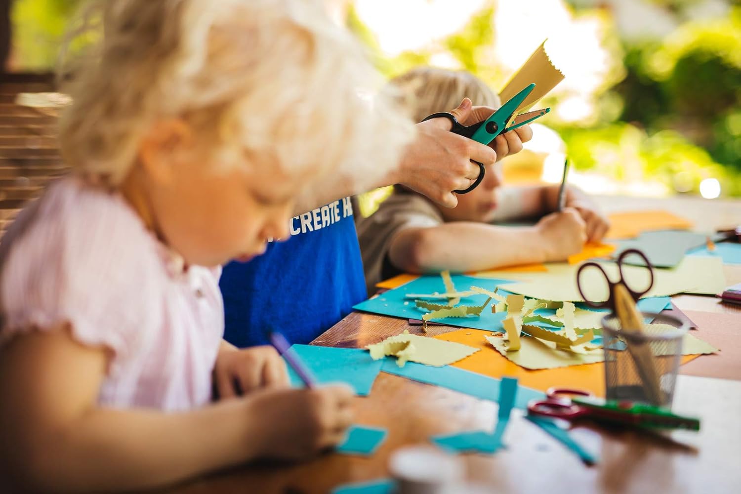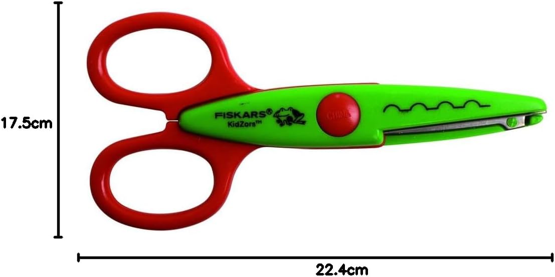 Forbici dentellate per bambini (lunghezza lama: 4,5 cm) per personalizzare i bordi delle tue creazioni o creare seghettature, Per destrimani e mancini, Dai 4 anni Presa sicura e confortevole grazie ai manici ergonomici in plastica di alta qualità, Forbici facili da distinguere: ogni paio è associato a un animale (coccodrillo, serpente e rana), Molteplici effetti decorativi ruotando le forbici Buone prestazioni di taglio grazie alle lame in acciaio inossidabile, Affilata di lunga durata grazie alla durezza ottimale dell'acciaio lame, Adatto per: carta, cartone, schiuma, feltro, plastica, plastilina e fogli di metallo sottili Lunga durata, Igienico - facile da pulire, Lavabile in lavastoviglie, Design finlandese Contenuto: 1x Fiskars Kidzors Forbici per bambini Animali palustri, 3 pezzi, Lunghezza lama: 4,5 cm, Lunghezza totale: 13 cm, Peso: 96 g, Materiale: Acciaio inossidabile/Plastica, Colore: Verde/Turchese/Giallo, 1003845