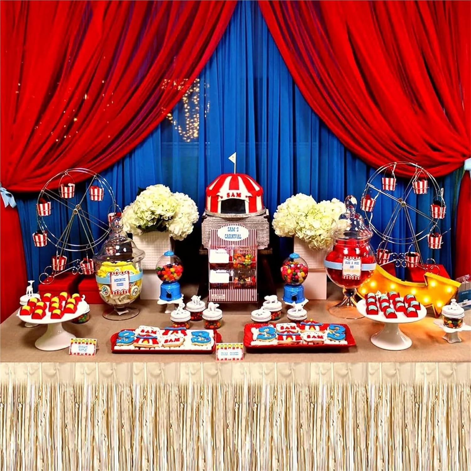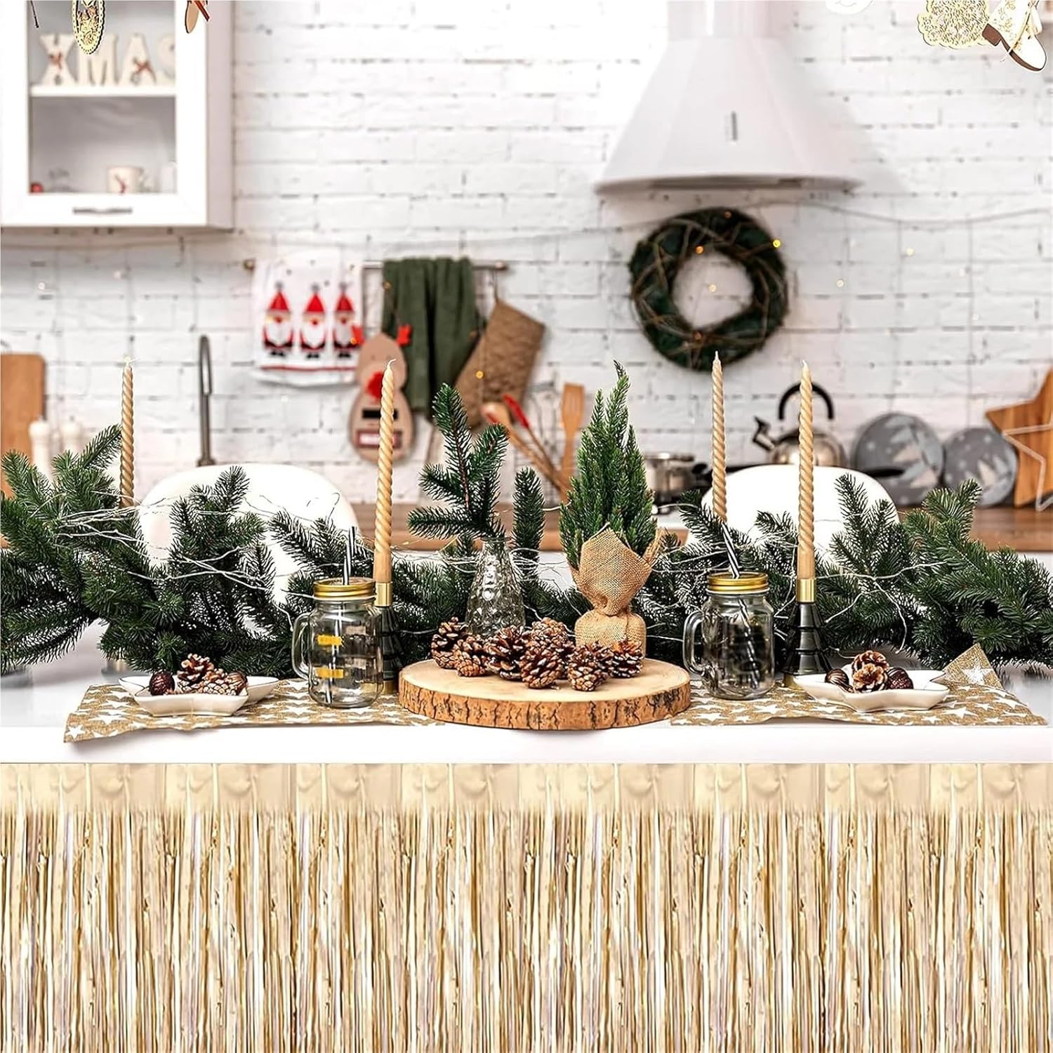 FJOADNVM Gonna Tavolo 2 Confezioni di gonne da Tavolo in Lamina di plastica Color Champagne, Decorazioni for Feste, gonne da Tavolo con Lamina Metallica a Strisce e svolazzanti
