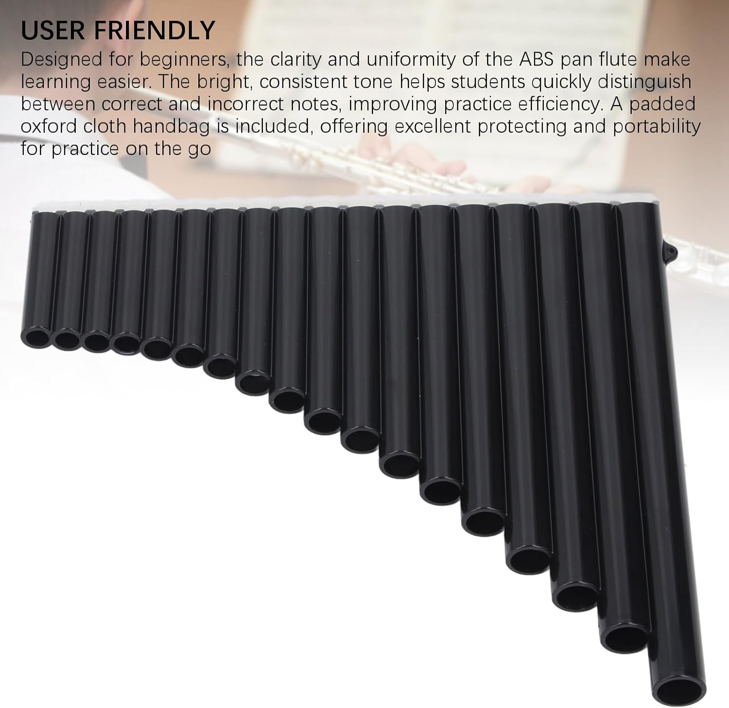 [Tono brillante e uniforme] Sperimenta un suono più brillante e coerente rispetto ai tradizionali flauti di bambù. il materiale ABS con il suo interno rigido e lucido offre ogni volta una risposta rapida e note chiare e precise. sia per principianti che per professionisti, questo flauto di Pan produce un tono vibrante che migliora la tua performance musicale. [Facile accesso e flessibilità alle note] Il lungo tubo scorrevole sulla striscia fissa nera consente regolazioni dinamiche del tono offrendo maggiore controllo e versatilità. sia che tu stia suonando melodie complesse o sperimentando tecniche di improvvisazione, questo flauto di Pan si adatta perfettamente a un'ampia gamma di stili musicali rendendolo un piacere da suonare. [Durevole e resistente alle intemperie] Realizzato in materiale ABS, questo flauto di Pan a 18 canne è costruito per durare. la struttura leggera ma robusta garantisce che possa resistere alle prestazioni all'aperto e all'uso frequente senza rompersi o deformarsi. le sue proprietà di resistenza agli agenti atmosferici lo rendono ideale per i musicisti in movimento, offrendo una lunga durata e una facile trasportabilità in qualsiasi ambiente. [Adatto ai principianti e portatile] Progettato pensando ai principianti, il tono chiaro e uniforme di questo flauto di Pan in ABS facilita l'apprendimento. il suono brillante e coerente aiuta gli studenti a identificare rapidamente le note corrette migliorando l'efficienza della pratica. include una borsa imbottita in tessuto oxford per un'eccellente protezione e portabilità che ti consente di esercitarti ovunque e in qualsiasi momento. [Ben sintonizzato e affidabile] Ogni flauto di Pan viene sottoposto a test rigorosi per garantire l'accordatura fin dal primo utilizzo. la costruzione in ABS mantiene la stabilità a temperature e livelli di umidità variabili fornendo precisione e affidabilità del passo costanti. non è necessaria alcuna accordatura, quindi puoi iniziare subito a suonare musica meravigliosa.