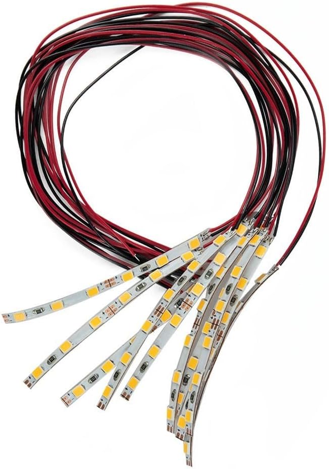 Installazione flessibile e facile: la striscia luminosa a LED precablata è dotata di un retro autoadesivo, che consente un'installazione facile e flessibile. Questo lo rende perfetto per varie applicazioni, come case delle bambole, stanze in miniatura e accessori laterali per binari ferroviari modellini. Illuminazione uniforme e grandangolare: con un angolo di visione di 120°, questa striscia luminosa a LED fornisce un'illuminazione uniforme, che i tuoi modelli sono ben illuminati da tutte le angolazioni. Alimentazione: la striscia luminosa a LED è compatibile con fonti di alimentazione CA e CC, con una tensione diretta di 12 V ~ 18 V. Questa versatilità consente una facile integrazione in diverse configurazioni e ambienti. Basso consumo energetico: la striscia luminosa a LED funziona con una corrente diretta di 20 mA/30 mA, che garantisce un consumo energetico efficiente pur fornendo un'ampia illuminazione.