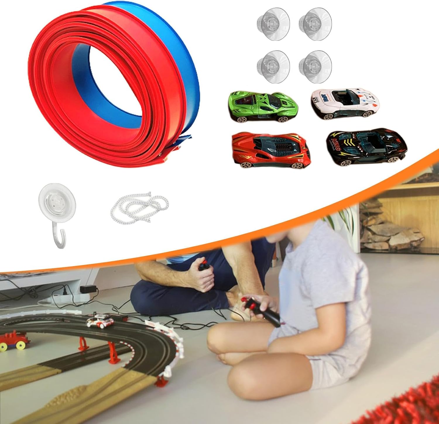 【SET DA CORSA】: Questo kit completo include auto pressofuse pronte per l'azione. Abbinato alla lunga pista da 4,5 metri, questo set fornisce tutto il necessario 【DIVERTIMENTO FAI DA TE】: Questa enorme pista ibile può essere piegata, curvata e modellata in innumerevoli configurazioni. I bambini possono costruire emozionanti, curve strette e persino loop impegnativi, stimolando la loro immaginazione e capacità di problem solving. 【AZIONE EMOZIONANTE AD ALTA VELOCITÀ】: L'esclusivo design ibile consente al modello di auto incluso di accelerare, sfrecciare attraverso curve strette e spiccare dai . È un'esperienza di gioco dinamica che dà vita ai concetti di velocità in modo divertente e pratico. 【INSTALLAZIONE IMMEDIATA e FACILE DA CONSERVARE】: Grazie all'innovativo design a ventosa, questa pista ibile per auto da corsa si fissa saldamente a tutte le superfici: pareti, porte, pavimenti o mobili. Al termine della gara, ibile si arrotola semplicemente per un facile e compatto stoccaggio. Ideale per il divertimento in viaggio e nelle sale giochi. 【REGALO PER GIOVANI CORRIDORI】: Questo versatile set di piste è la scelta ideale per compleanni e festività. Realizzato in polipropilene, è progettato per offrire ore di intrattenimento coinvolgente per bambini dai 3 anni in su.
