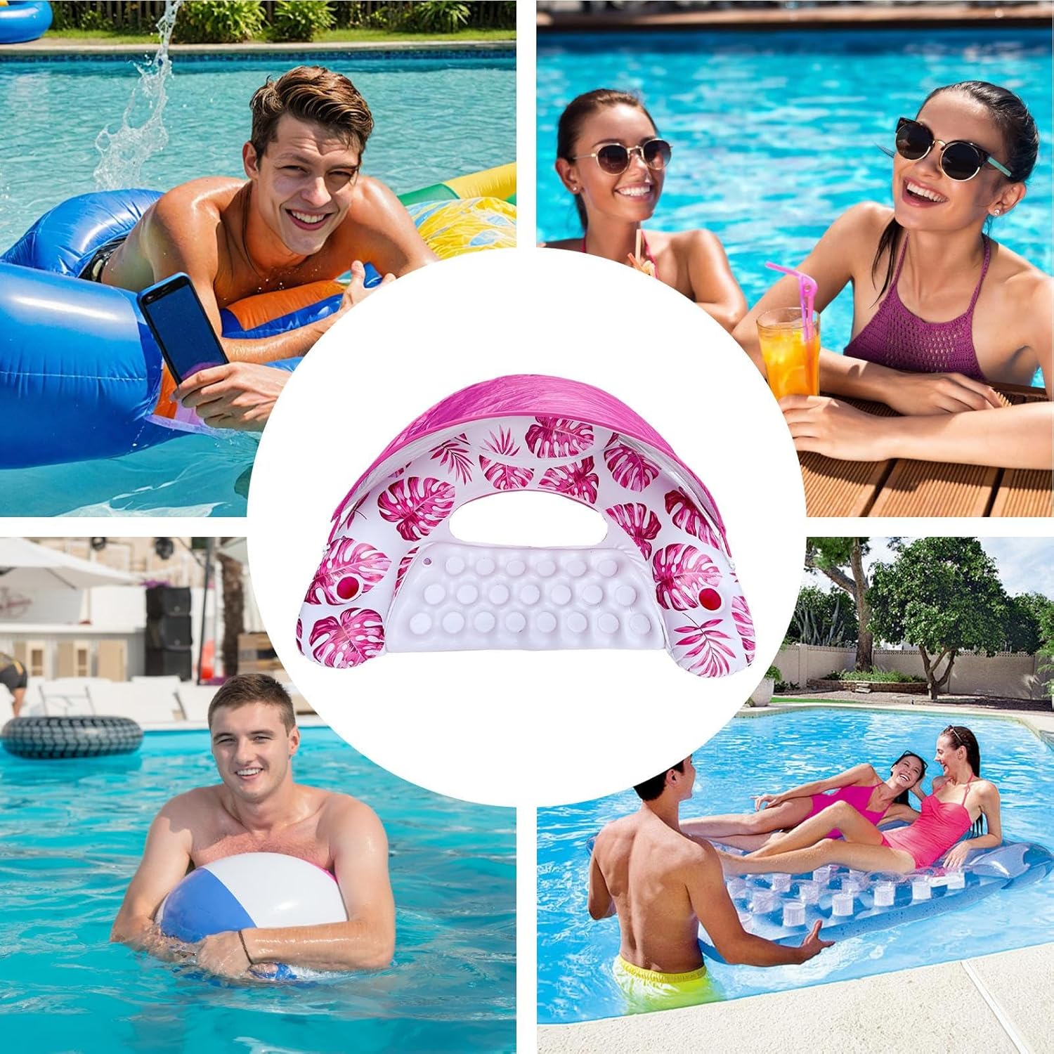 Sistema di efficienza: Il piatto garantisce un'organizzazione senza sforzo nelle borse da viaggio o negli armadietti, consente processi di inflazione rapidi di fulmini e ottimizza l'efficienza di trasporto grazie al minimo spazio di archiviazione. Design del baldacchino tropicale:: Goditi il rilassamento creativo dell'acqua con speciali vele da sole e superfici di sonno integrate. Il design dettagliato delle foglie di palma crea un tocco di vacanza per gli adulti e cattura il fascino di un rifugio tropicale. Stoccaggio sicuro: portabicchieri incorporato, telefono cellulare speciale e scomparti per la protezione solare con un antiscivolo mantengono gli oggetti organizzati e in corso per le prenotazioni di acqua rilassata. Zattera per piscina flessibile: adatta per uso privato della piscina e per la decorazione della festa in piscina. Supporta le attività acquatiche estive, agisce come un letto rilassante per gli individui e garantisce un piacere senza sforzo nelle zone di acqua poco profonda. Posizione dell'acqua stabile: la forma posteriore accuratamente elaborata favorisce l'equilibrio lombare e la stabilità degli arti nell'acqua. L'ergonomia a a forma di barca con camere d'aria di fascia alta offre una presa continua e comfort di nuoto.