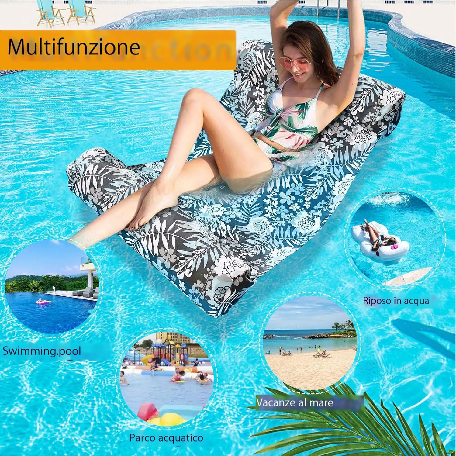Comfort di rivitalizzazione: la nostra gomma galleggiante da piscina offre un'esperienza rinfrescante mentre ti crogioli al sole sull'acqua. Realizzato in PVC avanzato e tessuto morbido, è abbastanza flessibile ma abbastanza forte da rilassarti nel totale comfort SCELTA TEMPA: Per la tua migliore esperienza di nuoto, scegli la nostra amaca galleggiante in piscina che contiene 250 libbre, offrendo un comfort spazioso per gli adulti più grandi per galleggiare senza sforzo e rilassarsi con un clima estivo caldo Facile da trasportare e piegare: basta utilizzare qualsiasi pompa (non incluso) per gonfiarlo senza sforzo. Quando sei pronto per partire, apri semplicemente la valvola e sgonfia. Il suo design compatto semplifica il trasporto Design unico: migliora il rilassamento a piscina con la nostra amaca galleggiante, progettata con piante vibranti e bellissimi fiori che trasudano energia e freschezza e migliorate da splendide stampe che aggiungono eccitazione al divertimento 'acqua Versatile negli usi: migliora il tuo rilassamento con la nostra amaca float piscina, progettata per trasformarsi senza soluzione di continuità da una sella a una sedia a vasca o salotto. per qualsiasi avventura all'aperto, è il compagno più versatile per la piscina
