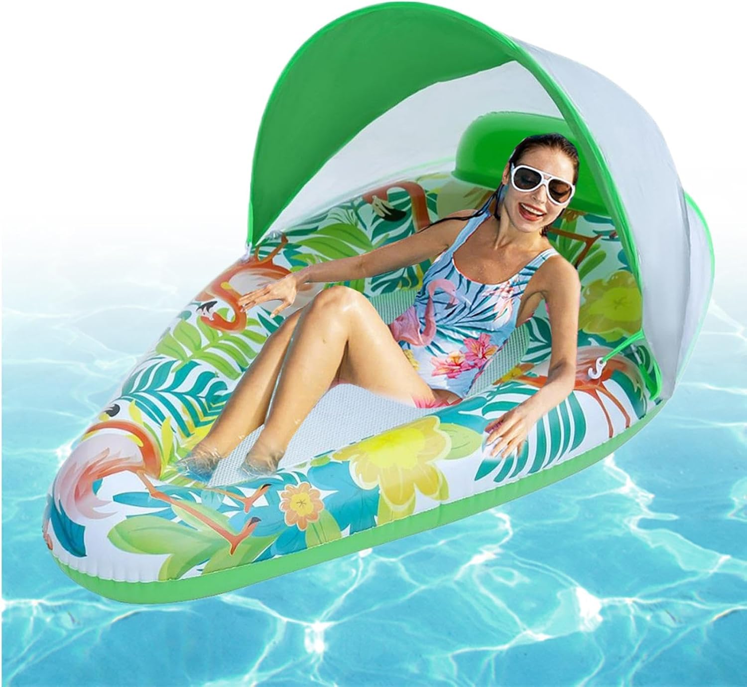 Comfort fresco e supporto robusto: progettato con strati resistenti agli strappi e design a maglia a nido d'ape, fornendo traspirabilità e durata affidabile per gli utenti Difesa UV migliorata: dotata di baldacchino staccabile e superfici a due cuciture, questo galleggiante garantisce un posizionamento adattabile per proteggere dai raggi UV nocivi, mantenendo il comfort Float compatto e leggero: progettato con portabilità a, questo galleggiante per piscina fornisce un sistema a due valvole e una capacità compatta, che facilita il trasporto e lo stoccaggio senza ulteriori problemi Ambito di applicazione: con un design versatile, questo galleggiante per piscina dotato di baldacchino garantisce la flessibilità del tempo libero per piscine e laghi, consentendo agli utenti di cambiare senza sforzo tra le diverse attività a base d'acqua con praticità e praticità senza pari e pratica Bilanciamento rilassante del peso: realizzato con una curva ergonomica per fornire un supporto confortevole, alleviare la fatica e garantire una distribuzione del peso equilibrata durante l'uso con il galleggiante del baldacchino