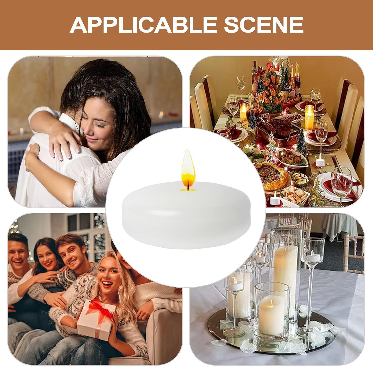 Elegant Floating Design: These small round candles float effortlessly on water, adding a romantic and serene glow to bowls, vases, or pools, making them perfect for weddings, dinners, or relaxing at home Ideal for Special Occasions: Create unforgettable ambiance at Christmas, Valentine's Day, or dinners with these floating candles that bring warm candlelight to centerpieces and table settings Compact Yet Impactful: Though small in size, these floating candles deliver lasting light that enhances the mood of any setting, whether you're hosting a festive party or setting up an intimate celebration Easy to Use & Display: Simply place the candles in a bowl or any water-filled container, and watch them light up your evening with flickering beauty that adds charm and style to your decor Versatile Decor Element: These candles work great for indoor or outdoor use, complementing floral arrangements, decorative bowls, or garden parties with soft illumination and visual appeal