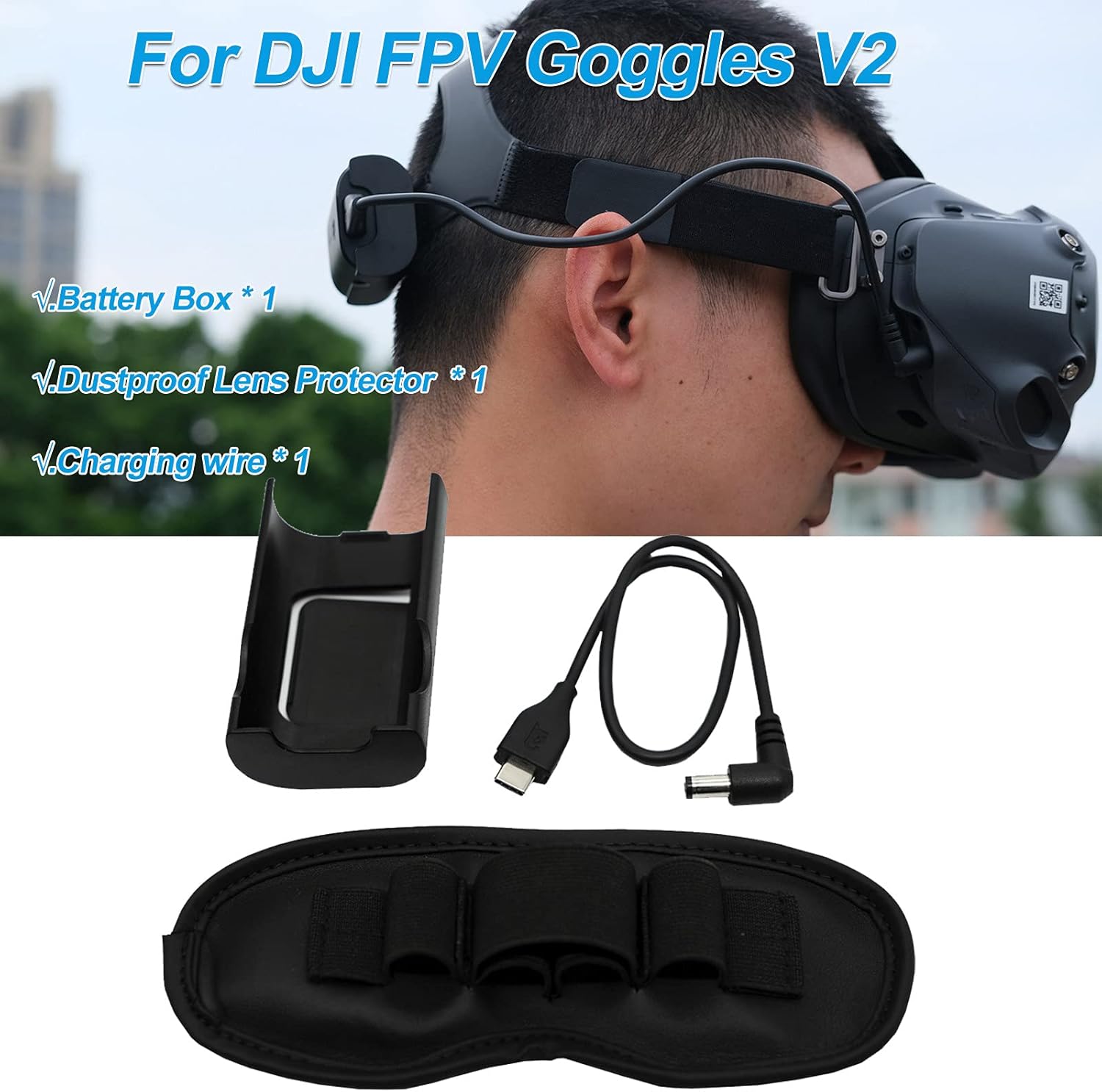 Materiale: PV Stile: alla moda Funzione: progettato per DJI FPV Geggles V2, aumenta il tempo di gioco, non preoccuparti della mancanza di elettricità e rinunciare al volo Se avete domande, non esitate a contattarci. Scenario applicabile: casa