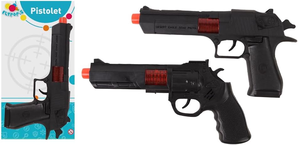 TON NUOVO GIOCATTOLO: Questa pistola per bambini è un ottimo modo per favorire l'immaginazione mentre ci si diverte. Potranno rivivere gli epici combattimenti dei loro eroi preferiti e sviluppare la loro coordinazione da soli o con gli amici. CONTENUTO: Questo gioco contiene 1 pistola a friction con scintille. Realizzato in plastica per garantire tutta la robustezza necessaria per durare nel tempo. Misura 23 cm x 12 cm. VIVA I VESTITI: Quando i bambini giocano, spesso sognano di diventare eroi intraprendenti. Con questa pistola, puoi aiutare tuo figlio a vivere questi sogni e a sentirsi come un poliziotto! GIOCHI SENZA TEMPO: Intemporali e imprescindibili, i travestimenti sono al centro del divertimento, permettendo ai tuoi bambini di divertirsi anche quando non ci sei. SEMPRE PIÙ DIVERTIMENTO! La marca Flypop's propone giocattoli che regalano piacere senza spendere troppo. Giochi da cortile, macchinine, accessori da cucina per momenti di gioco e felicità.