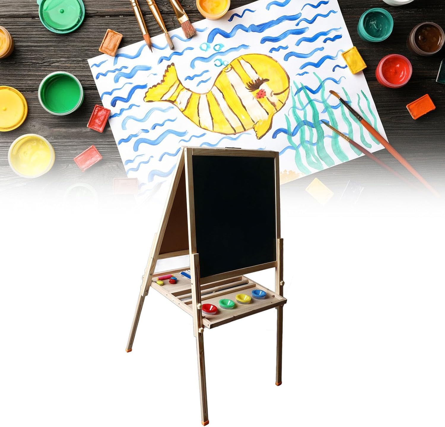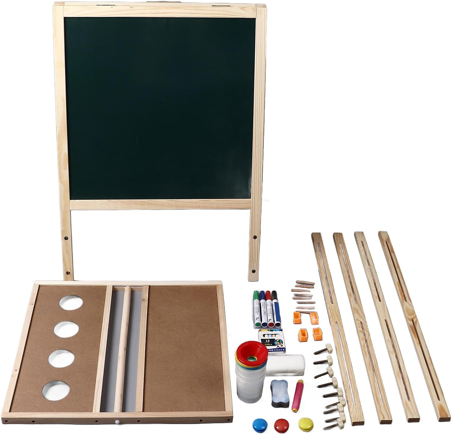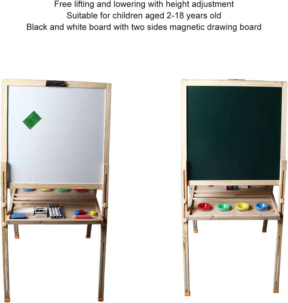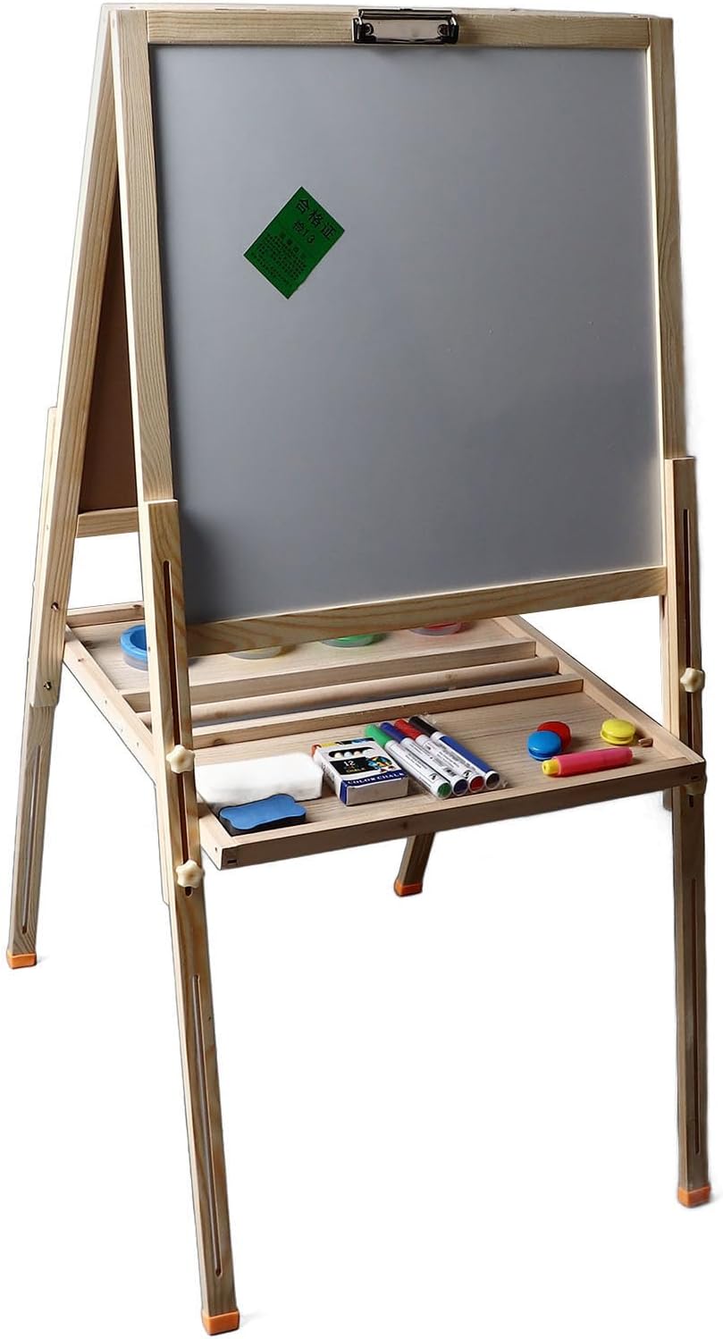 [Hub di creatività multifunzionale] Arte magnetico a doppia faccia combina la lavagna a secco, la lavagna e il vassoio di stoccaggio; Design pieghevole regolabile si adatta all'uso del desktop o al montaggio a parete per spazi creativi versatili. [Costruzione per bambini-sicurezza] telaio in legno premium con materiali non tossici e bordi lisci garantisce sicurezza; L'artigianato ecologico protegge i giovani artisti durante infinite sessioni di disegno. [Comodità di cancellazione istantanea] La superficie della lavagna magica di lavagna pulita senza sforzo mentre il lato della lavagna consente il disegno tradizionale - entrambe le superfici incoraggiano la creatività spontanea senza problemi di pulizia disordinati. [Monte a parete con risparmio spaziale] I ganci sospesi integrati consentono la conservazione verticale; Trasforma qualsiasi angolo della stanza in studio d'arte istantaneo mantenendo organizzate aree di gioco e accessibili alla creatività. [Strumento di apprendimento adattativo per età] perfettamente progettato per bambini di 2-13 anni con telaio regolabile in altezza; Sviluppa belle capacità motorie attraverso la pratica di scrittura interattiva ed espressione artistica in ogni fase di sviluppo.