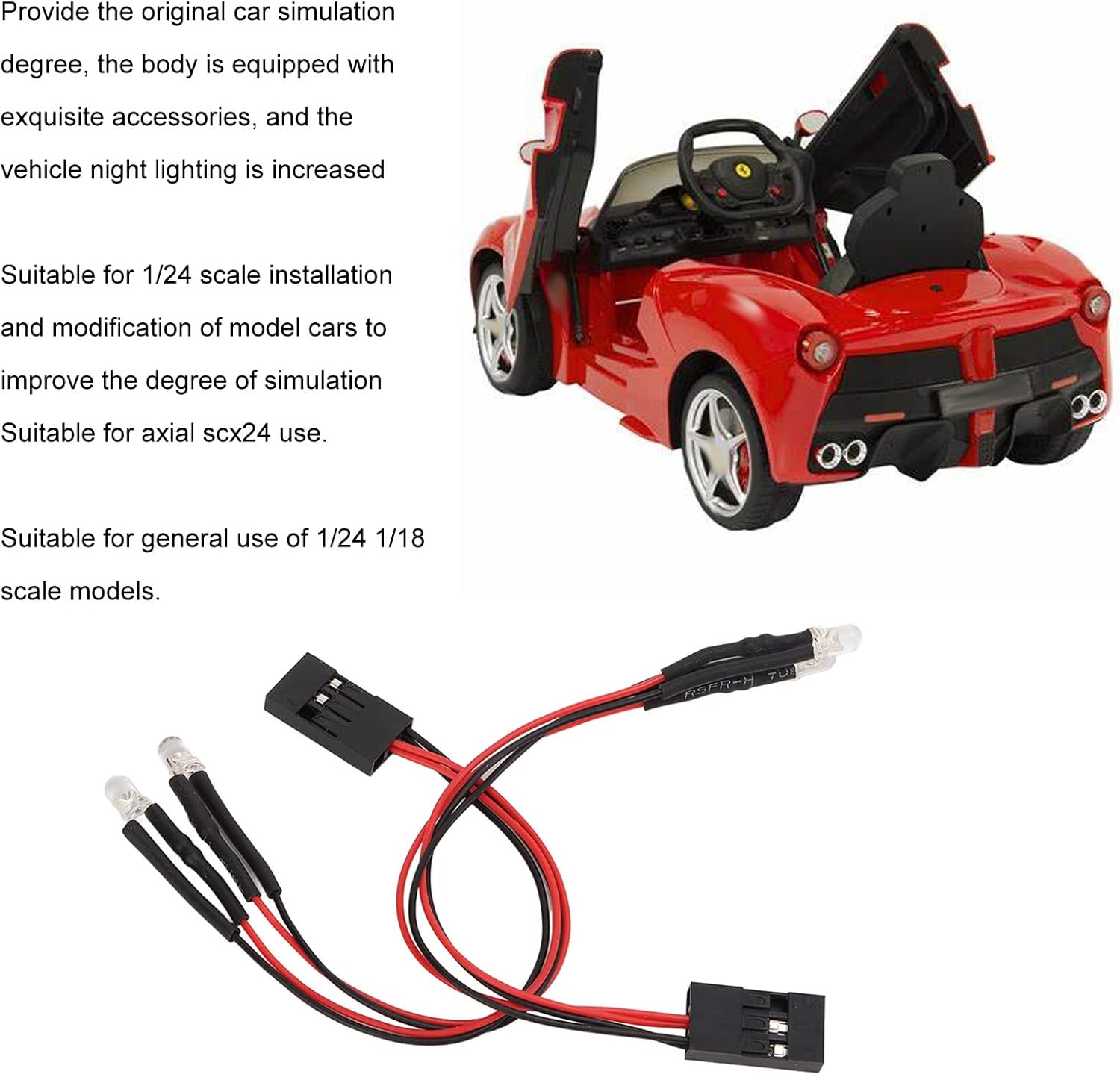 [Materiale di qualità] Materiali in plastica e LED di prima classe per prestazioni leggere e durature. [Performance stabile] migliora la visibilità notturna per la tua auto RC e garantisce una migliore esperienza di gestione. [Utente) Facile da installare e utilizzare, direttamente dal destinatario senza ulteriori problemi. [Alta simulazione] migliora l'autenticità della sua auto modello con accessori dettagliati e una maggiore illuminazione notturna. [Applicazione versatile] Compatibile con SCX24 e 1/24 1/18 Modelli di scala assiale per un effetto di illuminazione.