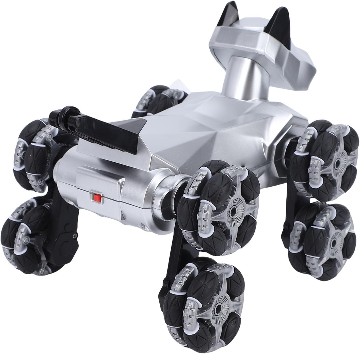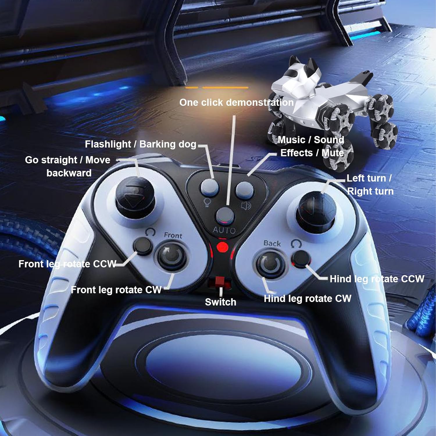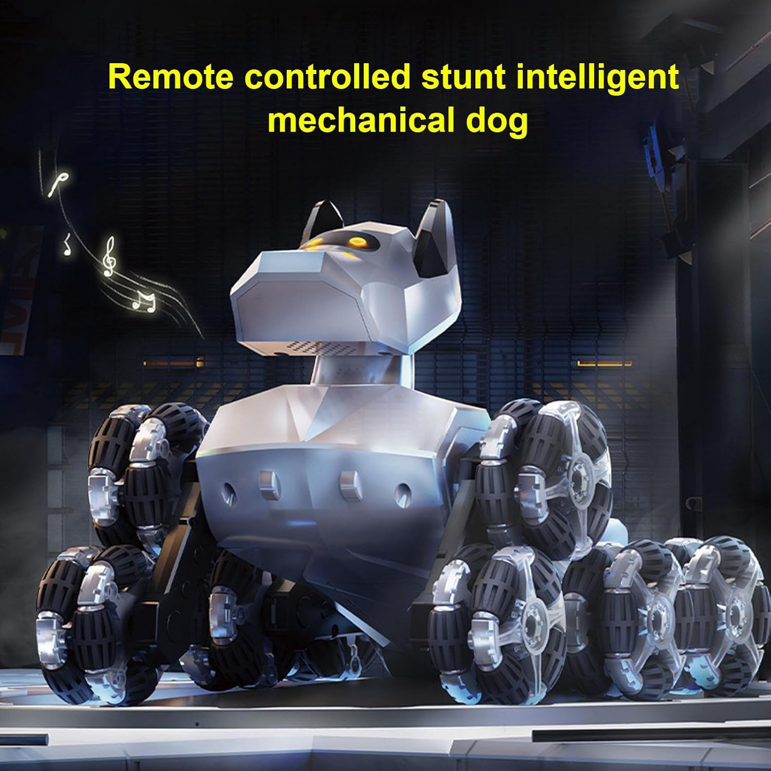 ALTAMENTE TECNOLOGICO E ACCATTIVANTE: Combinando l'aspetto di un cane meccanico con un design a otto ruote motrici, la sua forma ricorda quella di un futuro cane da battaglia, con linee audaci e luci a LED (come gli occhi e il telaio) come accenti. Accoppiato con effetti sonori dinamici, cammina come un compagno intelligente di un film di fantascienza, emanando un senso futuristico ed è profondamente amato dai ragazzi MOVIMENTO FLESSIBILE, STUNTAZIONI CONTINUE: Il giocattolo per cani robot telecomandato adotta quattro paia di ruote in gomma antiusura, che supportano le svolte in avanti, all'indietro, a sinistra e a destra e può completare fantastiche acrobazie come rotazione a 360° sul posto, rotazione laterale, rotolamento e camminata all'indietro. Ha una forte potenza e un'ottima presa e può correre senza problemi su vari tipi di terreno come pavimenti, tappeti e piastrelle, il che è molto interessante FUNZIONAMENTO DEL TELECOMANDO E RISPOSTA SENSIBILE: L'auto giocattolo per cani robot telecomandata è dotata di un telecomando wireless da 2,4 GHz, con una lunga distanza di controllo (solitamente 15-25 metri), segnale stabile e forte capacità di prevenire interferenze. La disposizione dei tasti è chiara e il funzionamento è semplice. INTERAZIONE INTELLIGENTE, ESPERIENZA COINVOLGENTE: Supporta effetti sonori di abbaio, luci lampeggianti, modalità segui o funzioni di evitamento automatico degli ostacoli. Il cane robot emette abbaiamenti simulati e suoni elettronici mentre si muove, come se fosse un vero animale domestico, migliorando il senso di immersione nel personaggio e permettendo ai bambini di provare il divertimento di addestrare cani meccanici mentre giocano MATERIALE SICURO, DI LUNGA DURATA E ANTIURTO: Il corpo del giocattolo per cani robot da arrampicata è realizzato in plastica ABS ad alta resistenza, resistente agli urti e all'usura. Gli angoli sono arrotondati e senza sbavature, soddisfacendo gli standard di sicurezza per i giocattoli per bambini. Alimentato a batteria, ricarica USB o utilizzando batterie a secco, con durata della batteria stabile, che è un regali per compleanni, festival e come ricompensa