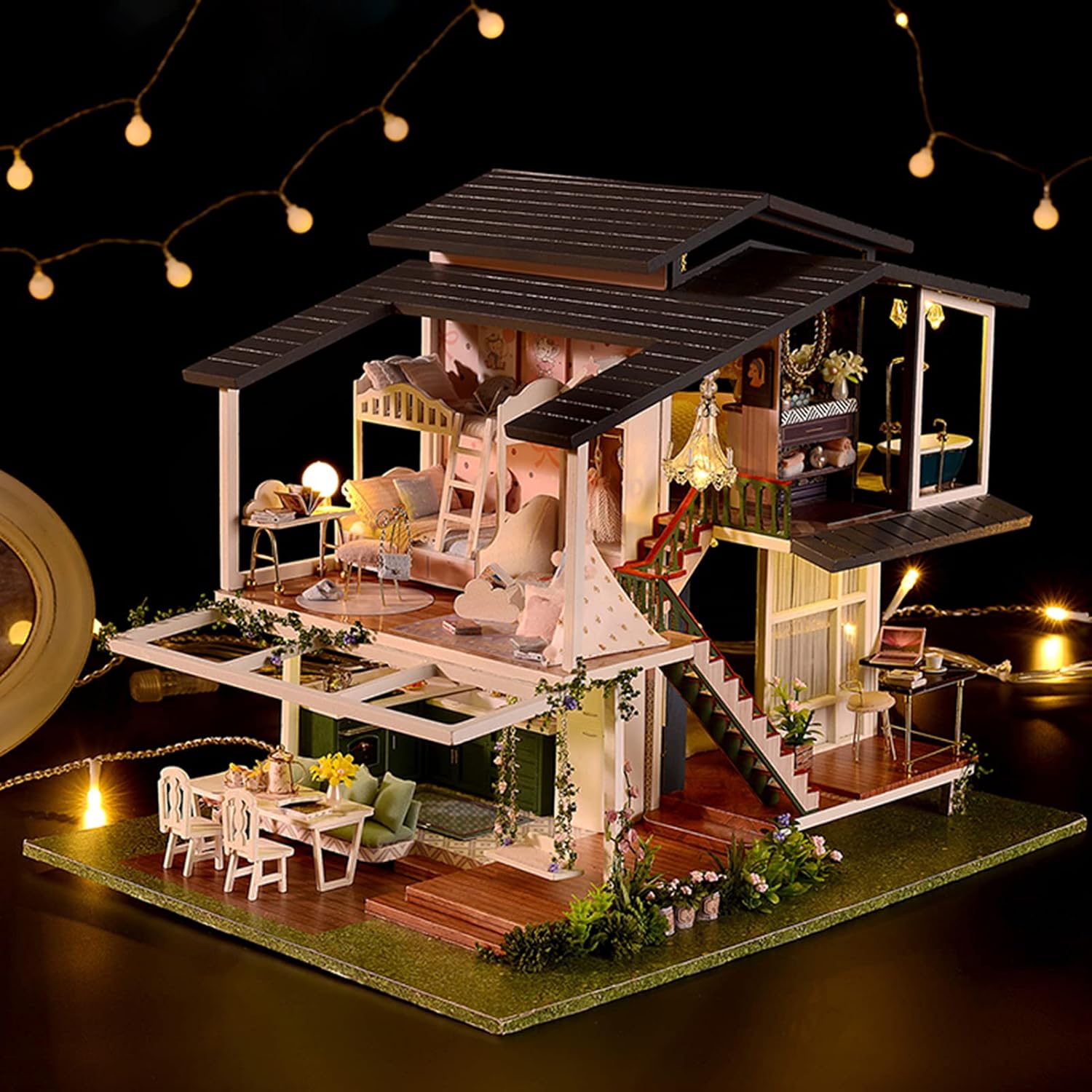 IL Design Della Villa A Tre Piani A 360 Gradi EMANA UN Romantico Sapore Francese, Permettendoti di Fuggire Temporaneament Dal Trambusto Della Città. La mini casa dellle bambole fai-da-te è ben realizzata e utilizza una miniatura di circa 1:24 Proporzioni reali. INCORAGIA IL PENSIRO APERTO E INCORAGIA LA COOTINAZIONE E LA CONCREPAZIONE MANO-A-OCCHIO. Tutti I Lavori sono forniti in buste separato e i manuali di istruzioni possono Guidarti dopo attraversa la casa delle bambol. Regali e Oggetti da Collezione Perfetti per Le Persone Che Amano l'Artigianato e l'Artigianato a Miniatura.