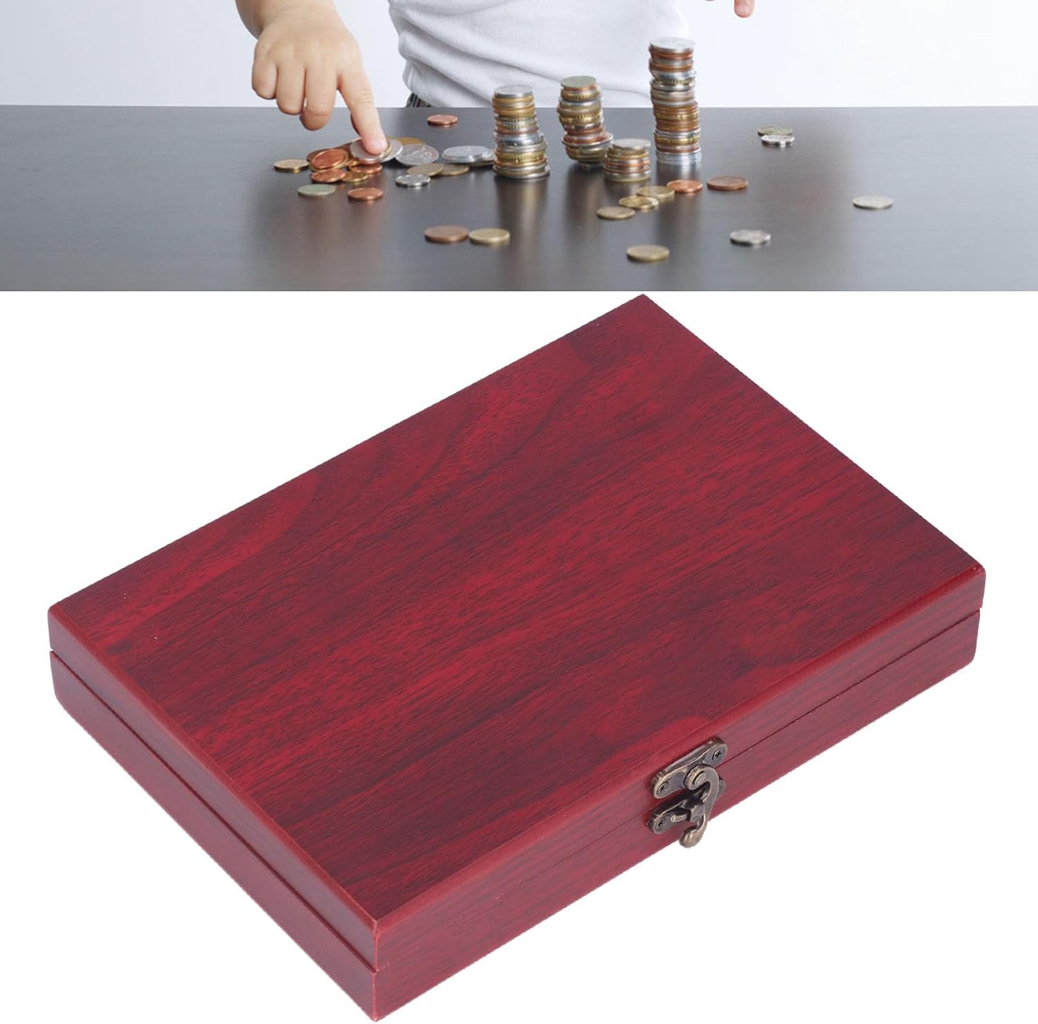 [LAVORAZIONE SQUISITA] L'elegante e retrò scatola in legno composito rosso scuro protegge efficacemente le monete dai danni. [GRANDE CAPACITÀ DI STOCCAGGIO] Può contenere fino a 50 monete, con una dimensione massima adatta per monete da 30 mm, offrendo ampio spazio di archiviazione. [Custodia trasparente] Visualizza in modo intuitivo la parte anteriore e posteriore delle monete facile esposizione e osservazione. [FACILE DA USARE] Contenitore per monete sicuro e durevole, semplice da aprire e bloccare, garantendo una lunga durata. [AMPIO UTILIZZO] per cerimonie di premiazione, regali aziendali, collezioni e altro ancora, rendendolo un'opzione versatile e pratica.