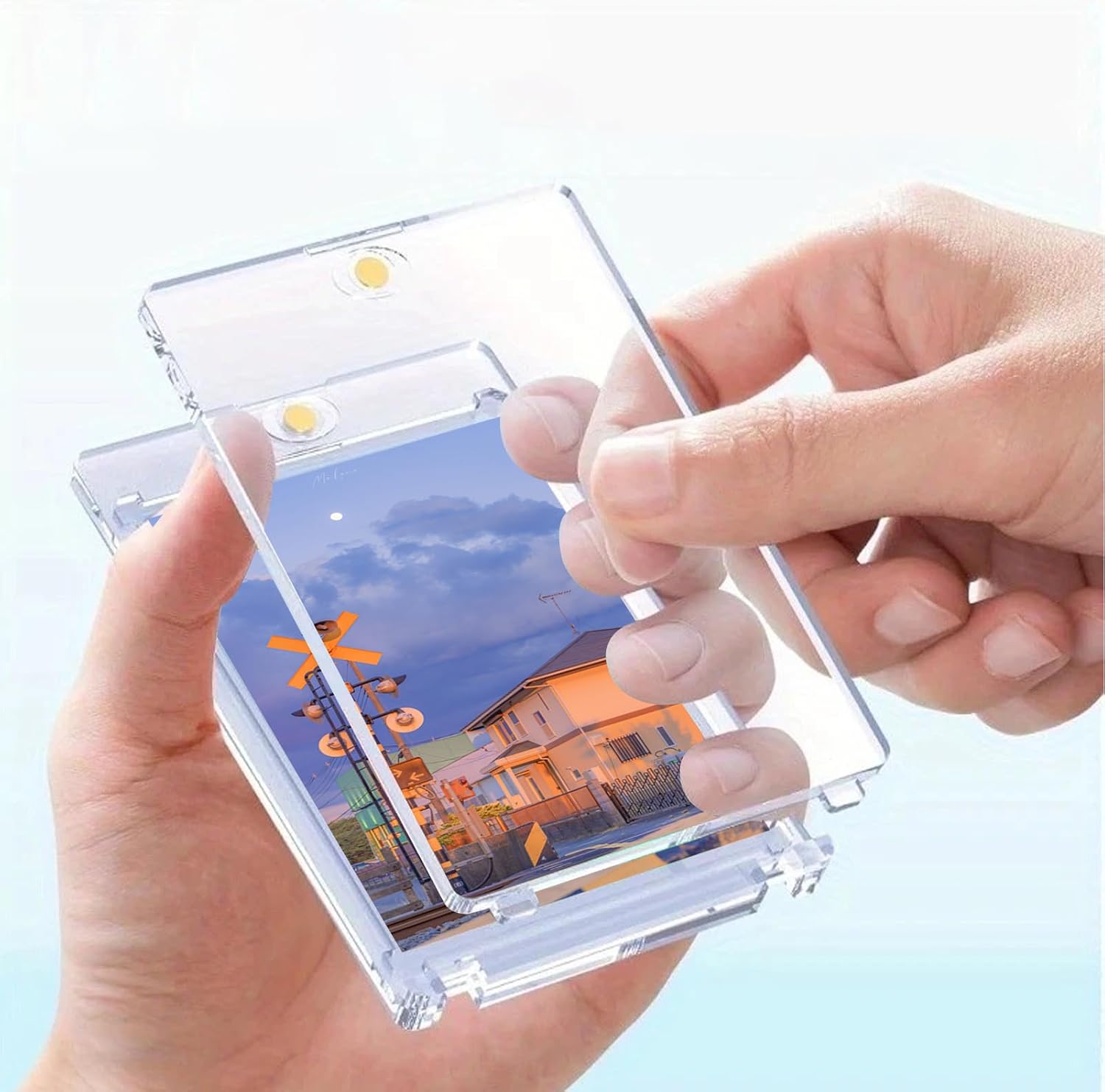 Utilizzo Polivalente: Perfette per custodire carte sportive e da gioco, con design universale che supporta il immagazzinamento multiplo e offre una soluzione completa per i collezionisti in un unico prodotto pratico e funzionale Protezione Completa Carte: Queste custodie rigide offrono una protezione robusta contro polvere, liquidi, e pieghe, garantendo una conservazione a lungo termine per le carte da collezione con durata affidabile per collezionisti appassionati Protezione Superiore: L'accesso senza apertura e la trasparenza cristallina assicurano la visione di entrambi i lati, diminuendo i rischi di usura e elevando il piacere di ogni fase della tua esperienza collezionistica Protezione Anticaduta: Dotate di chiusura magnetica, queste custodie offrono una soluzione di storage sicuro che previene cadute accidentali, unendo accessibilità immediata e difesa robusta per mantenere le carte sempre al sicuro. Schermatura UV Efficiente: Acrilico resistente blocca raggi ultravioletti, contrasta l'ossidazione e offre protezione affidabile per collezionabili in esposizione