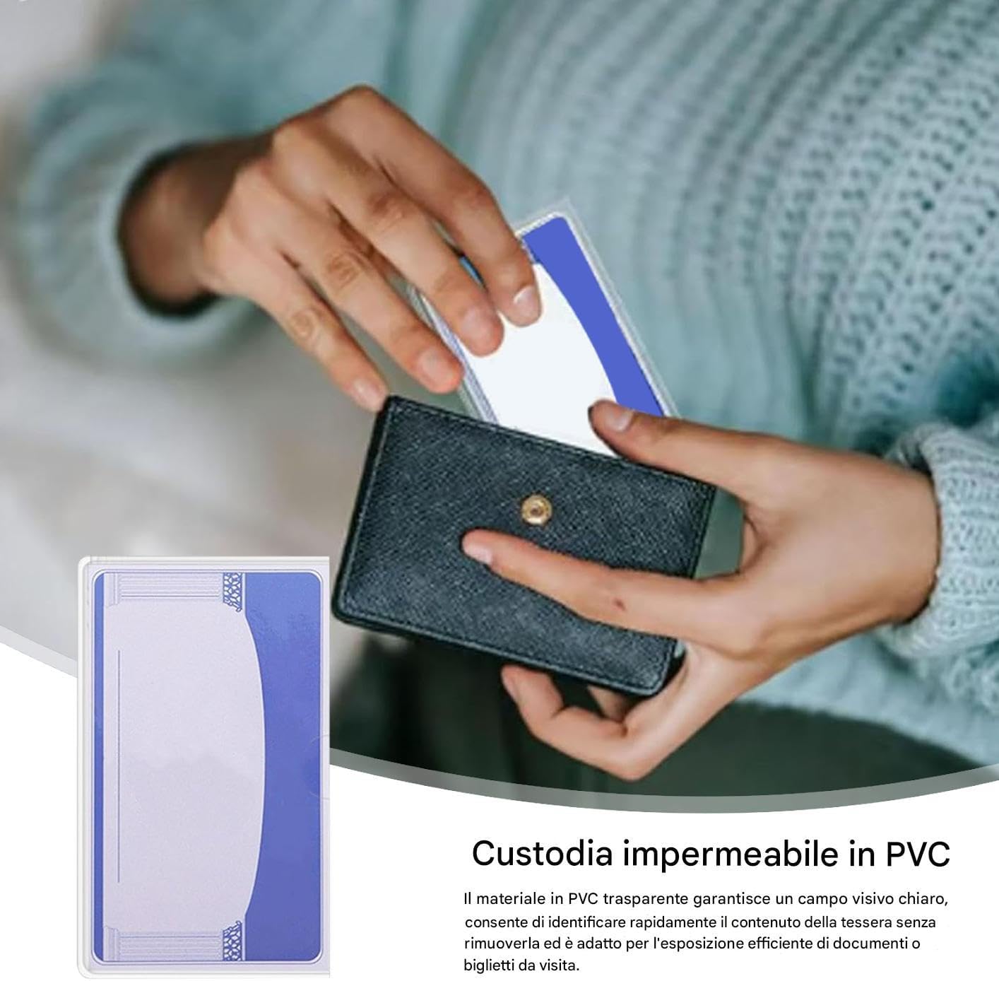 Resistenza Polvere&: Minimizza quotidiani con struttura durevole che scherma efficacemente carte previdenziali tessere e biglietti da visita da abrasioni depositi terrosi e superficiali permanenti Presentazione Efficiente: PVC ad alta visibilità con finestra trasparente assicura riconoscimento immediato, permettendo esposizione efficace del documento senza rimuoverlo, per presentazioni e uso quotidiano Scudo Antidanno Efficace: Design robusto in PVC garantisce protezione duratura per carte sensibili prevenendo da esposizione all'acqua e preservando da usura quotidiana assicurando longevità estesa delle carte mantenendo leggibilità e condizioni ottimali in modo costante e affidabile giorno dopo giorno Archiviazione Multifunzione: Protegge le carte d'identità e si adatta a varie tipologie come e magnetiche, offrendo una soluzione versatile per le esigenze di conservazione delle tessere essenziali. Design Compatto: Custodia sottile e leggera scivola comodamente nei portafogli mantenendo un ingombro minimo, formato tascabile senza volume aggiuntivo per un uso quotidiano pratico e discreto