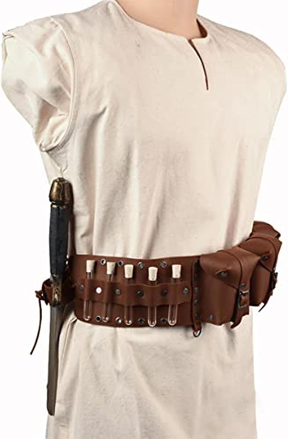 Il set include: il set di bottiglie di pozioni della strega magica ha tutto il necessario per un perfetto look medievale o rinascimentale. Materiale: realizzato in pelle PU resistente di alta qualità con lavorazione eccellente, molto elastico, morbido e comodo da indossare. Taglia unica: facile da indossare, facile da allentare. Taglia unica e chi lo indossa può regolare la taglia in base al proprio tipo di corporatura. Adatto al pubblico: può essere abbinato a qualsiasi abbigliamento vintage. Adatto a molte occasioni: adatto per punk, steampunk, feste a tema Halloween, cosplay, vampiri, retrò, feste in maschera, carnevale, rinascimento, appuntamenti, feste di Natale, casual, viaggi, club, cene, occasioni informali o nuovi abiti quotidiani.