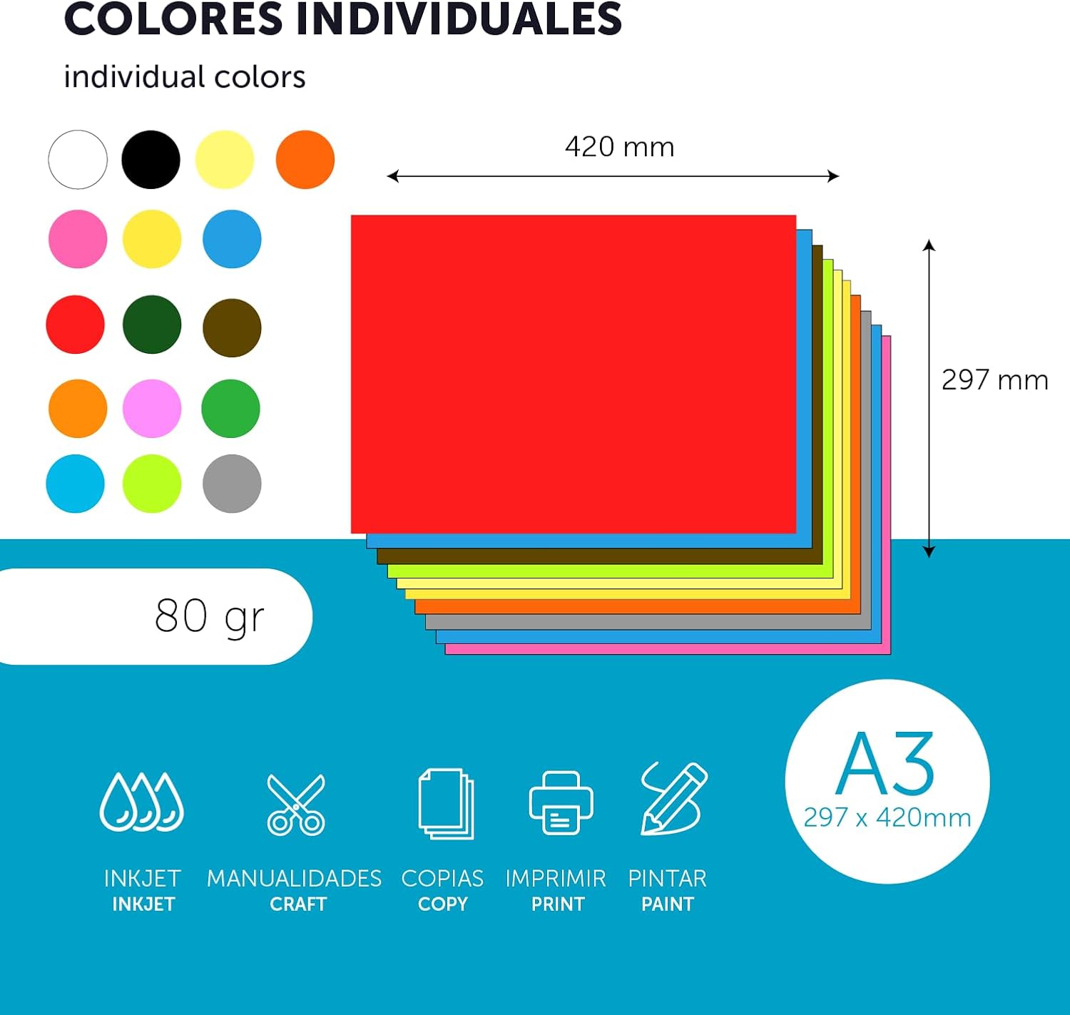 Fogli colorati per creatività: Scopri la versatilità dei nostri fogli colorati A3. Perfetti per stampare, per lavoretti manuali e progetti scolastici, offrono una finitura impeccabile ad ogni utilizzo, ideale per biglietti e inviti unici. Multiuso: Il blocco di carte assortite per lavoretti manuali offre un'ampia gamma di colori, ideale per stimolare la creatività dei bambini. Perfetto per attività scolastiche e progetti artistici a casa. Facile da Tagliare e Modellare: Grazie alla sua grammatura, questi fogli sono facili da tagliare, piegare e modellare secondo le tue necessità. Puoi usarli per creare sculture di carta, decorazioni e dettagli con precisione e facilità. Eccellenti risultati di Stampa: Stampa documenti e design creativi con sicurezza, sapendo che i nostri fogli offrono una superficie liscia per una qualità di stampa eccezionale. Varietà per Ogni Progetto: Che tu abbia bisogno di colori pastello per progetti delicati o toni intensi per progetti audaci, i nostri fogli ti offrono opzioni illimitate.