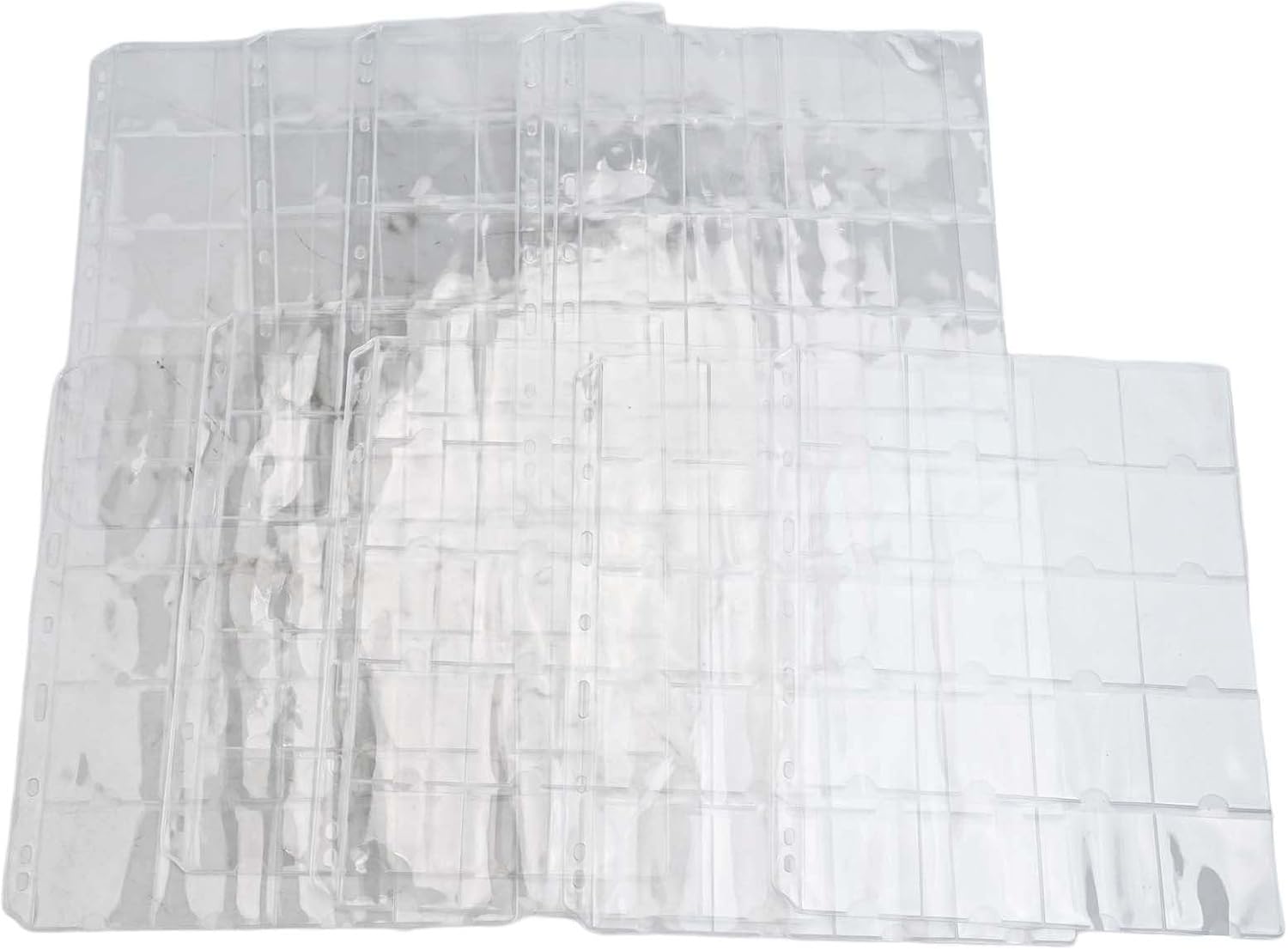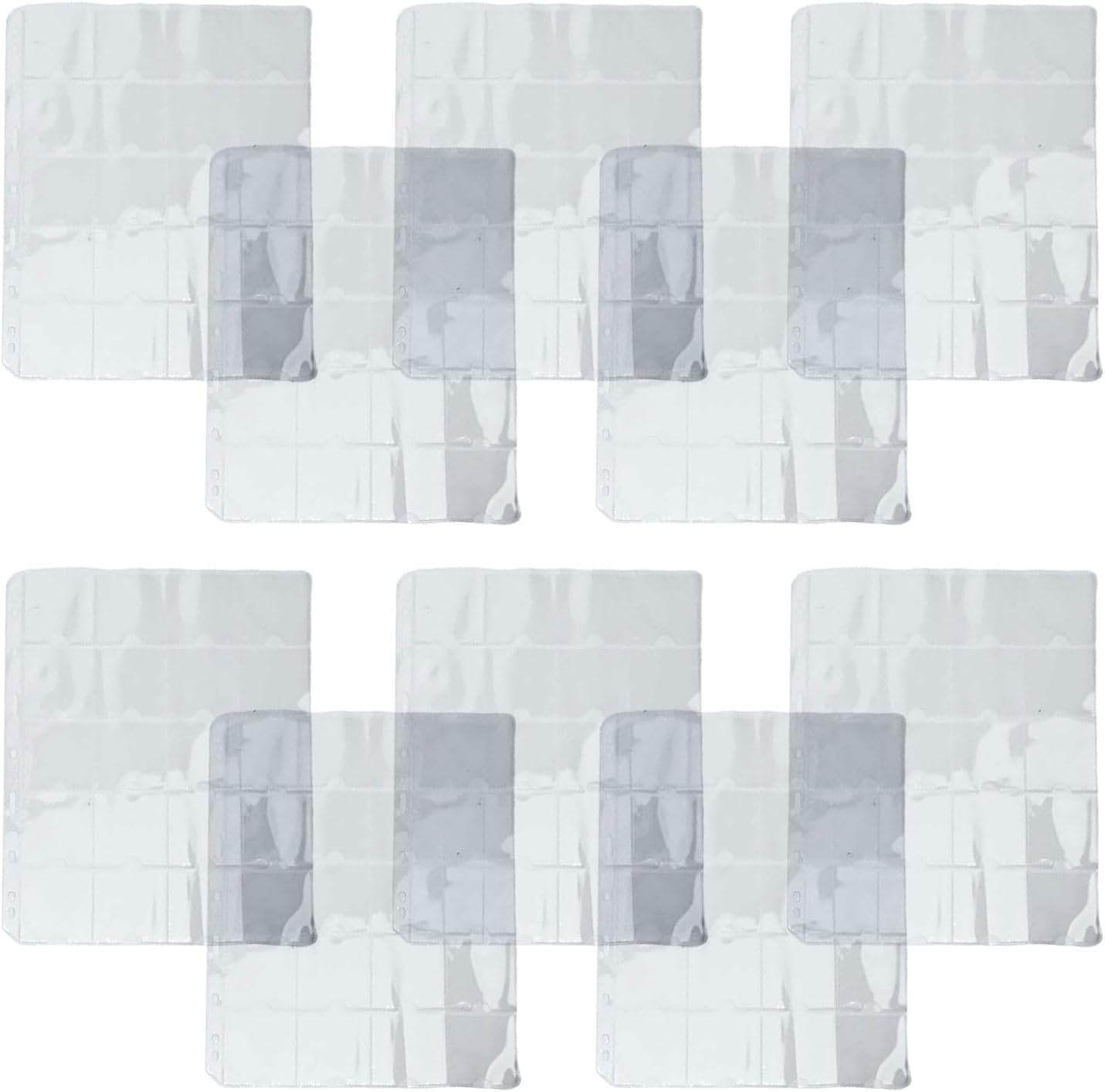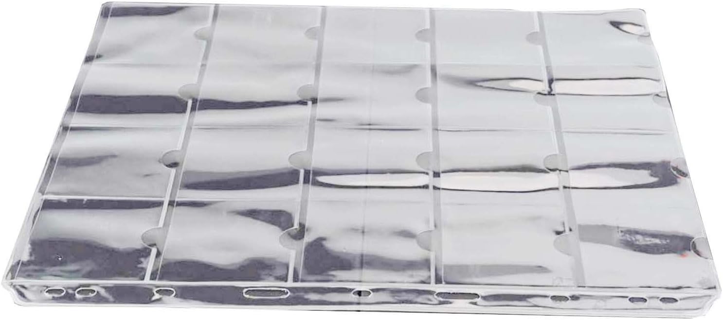 Materiale PVC trasparente: realizzate in PVC trasparente e di lunga durata, queste pagine per monete sono sicure per l'ambiente e impermeabili. I bordi lisci prevengono lesioni alle mani offrendo resistenza alla polvere per una conservazione a lungo termine. 20 tasche per foglio: ogni pagina dispone di 20 tasche trasparenti da 52 x 52 mm, perfette per organizzare monete fino a 50 mm di diametro. Il design antiscivolo mantiene le monete saldamente in posizione mantenendo una presentazione ordinata. Design sfuso per foglia: progettati con 9 fori standard sul lato sinistro, questi fogli si integrano facilmente nella maggior parte dei raccoglitori e degli album. La semplice installazione li rende un sostituto perfetto per le pagine dei porta monete esistenti in qualsiasi sistema di raccolta. Soluzione completa per l'organizzazione: queste pagine trasparenti sono perfette per riporre vari oggetti da collezione, tra cui gettoni, medaglie, badge e monete commemorative. Mantieni l'intera collezione organizzata e visivamente accessibile senza rimuovere gli oggetti dallo stoccaggio. Protezione versatile da collezione: oltre alle monete standard, queste pagine possono contenere centesimi, centesimi e oggetti di dimensioni simili. Il PVC trasparente consente una visibilità completa proteggendo i tuoi preziosi oggetti da collezione da danni e usura.